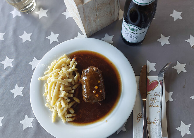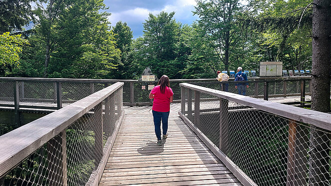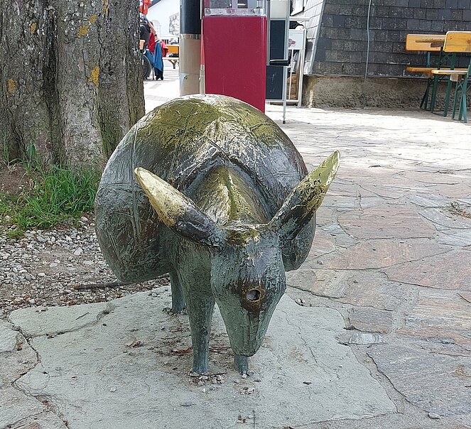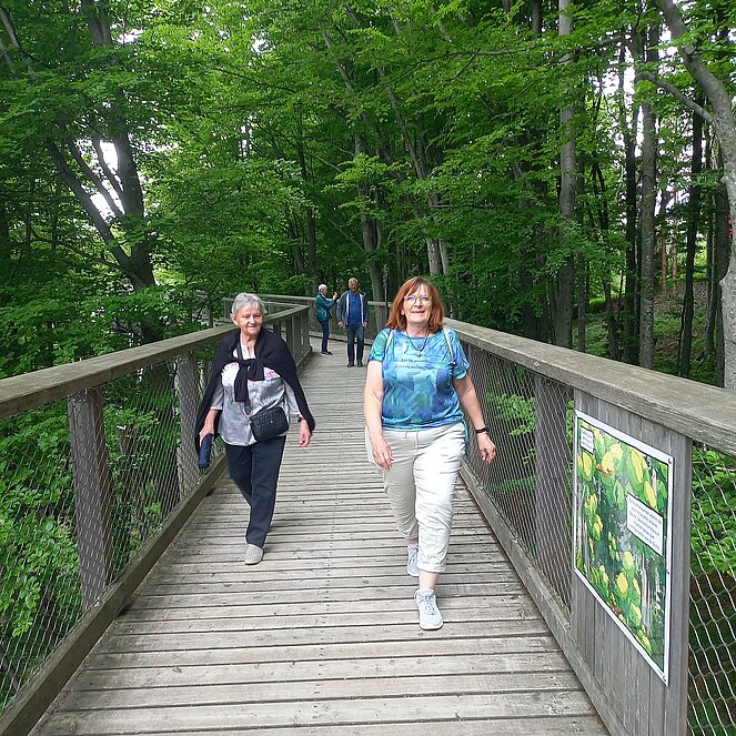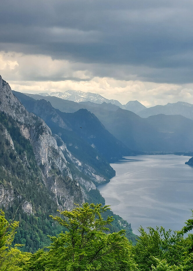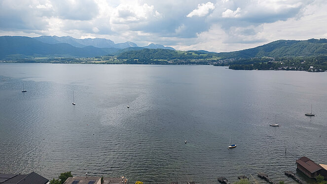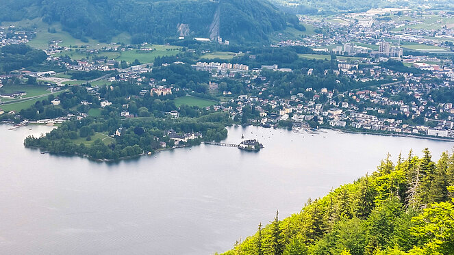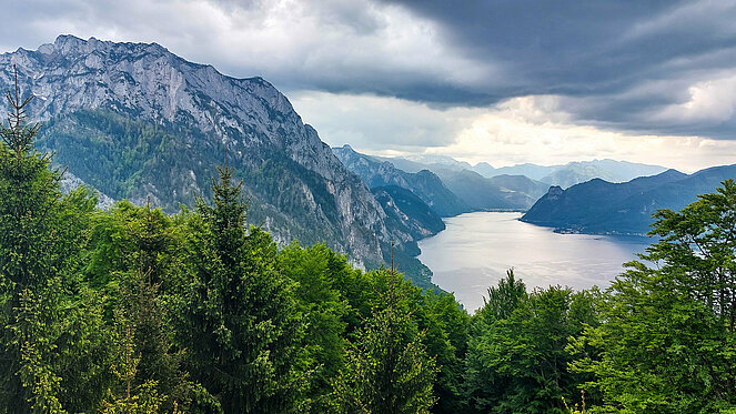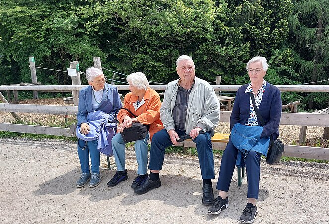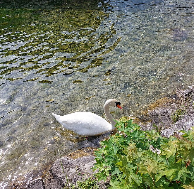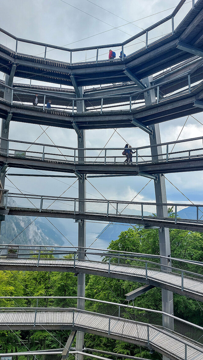 Den Nachmittag verbrachten wir dann auf dem Grünberg, den wir mit einer Seilbahnfahrt erreichten. Einige entschieden sich den Baumwipfelpfad mit Aussichtsturm zu erkunden, andere wiederum kehrten im Gastgarten der Grünbergalm ein und genossen ihr Eis oder Kaffee mit sehr guten Topfenstrudel. Leider konnten wir den schönen Almgastgarten nicht allzulange genießen, einige Tropfen vertrieben uns ins Innere der Hütte, wo dann aber ausgiebigst getratscht wurde. Erwähnen möchten wir schon auch, dass die Preise auf der Grünbergalm noch sehr human sind und das Personal ausgesprochen freundlich war. Um 16.15 h ging es wieder mit der Seilbahn hinunter nach Gmunden, wo uns der Traunsee erwartete. Schön waren im See die „Schwaneltern“ mit ihren Jungen zu beobachten.