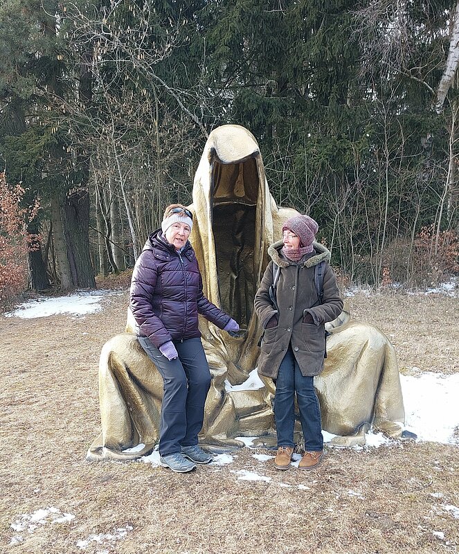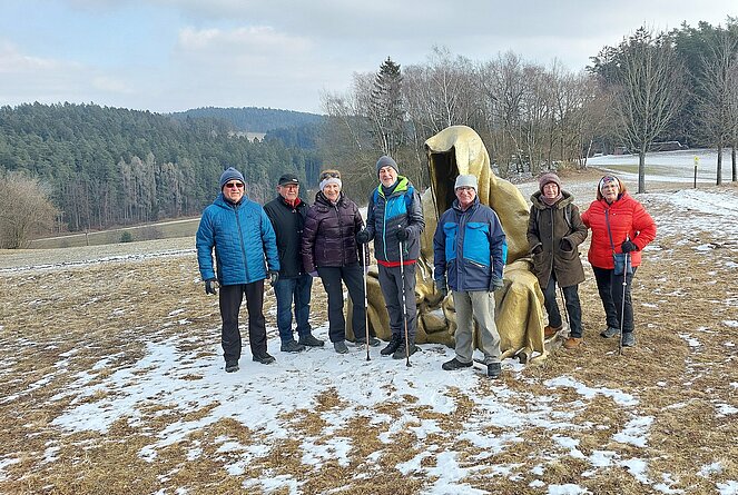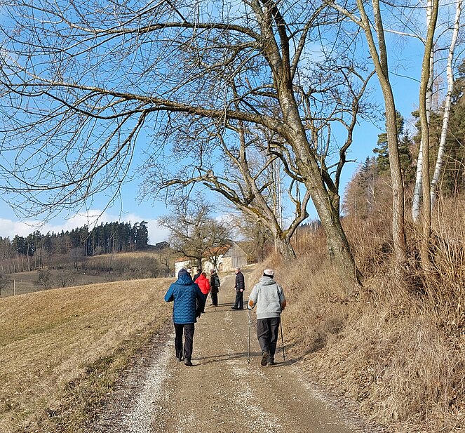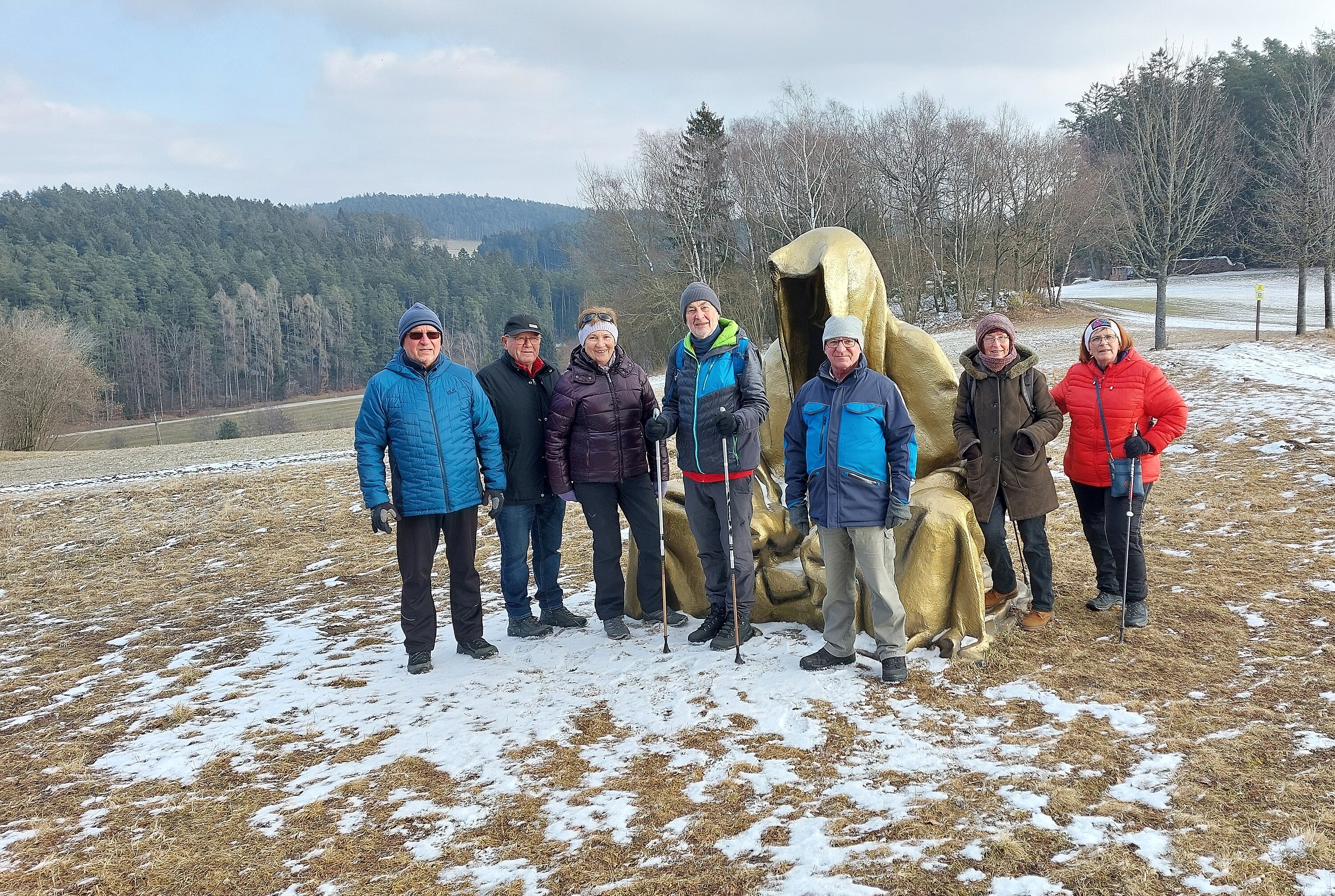 Bei unserer heutigen Wanderung hat wieder Renate unseren Wanderguide gemacht - danke dafür. Start war in Wintersdorf am Parkplatz Roadlcross-Trail. Vorbei beim Gasthaus Keck wanderten wir über den Roadlberg, auf wunderschönen Wald- und Wiesenwegen bis nach Zeuss. Und auf dieser Strecke gab es viel zu entdecken: der Gedenkstein an Franz Keck, die Spuren der wagemutigen Mountainbiker, die auch im Winter den Roadlcross Trail befahren, am Waldende drei „Wächter der Zeit“ und zwischendurch finden sich immer wieder Schautafeln über die Vogelwelt am Roadlberg. Über die „Hirschstoaner Häuser“ wanderten wir zurück nach Wintersdorf. Die Strecke war ca. 7 km lang. Den gemütlichen Abschluss gab es dann beim Loschka in Reichenau.