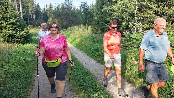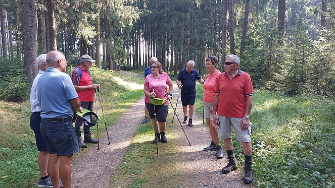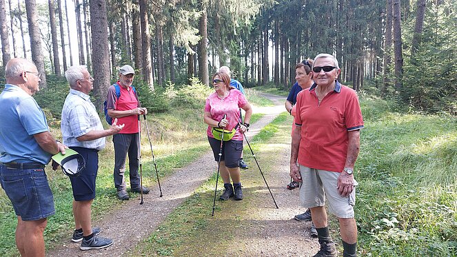 Start war beim Seniorenheim in Hellmonsödt – 9 Wanderer und 2 radfahrende Kinder nahmen daran teil. Nach einem kleinen Stück auf einem Wiesenweg erreichten wir den „Hellmonsödter Wald“. Angenehme Temperatur, weiche Wald- und Feldwege, frische Luft zum Durchatmen machten diese Wanderung im wahrsten Sinne des Wortes zu einer „Genusswanderung“. Vom Vogelgezwitscher hörten wir nicht allzuviel – gab es doch nach 2 Monaten Pause wieder viel zu tratschen.