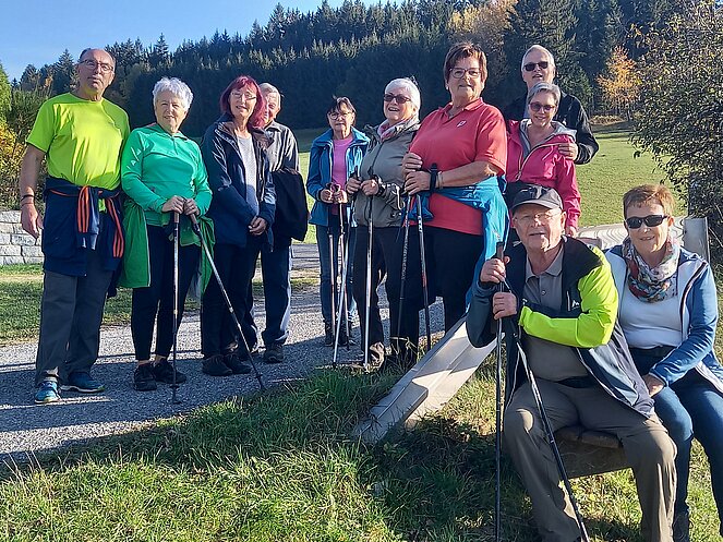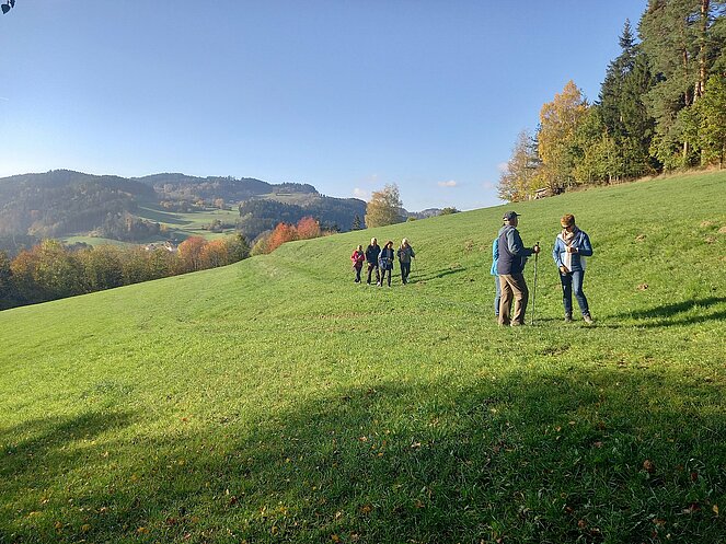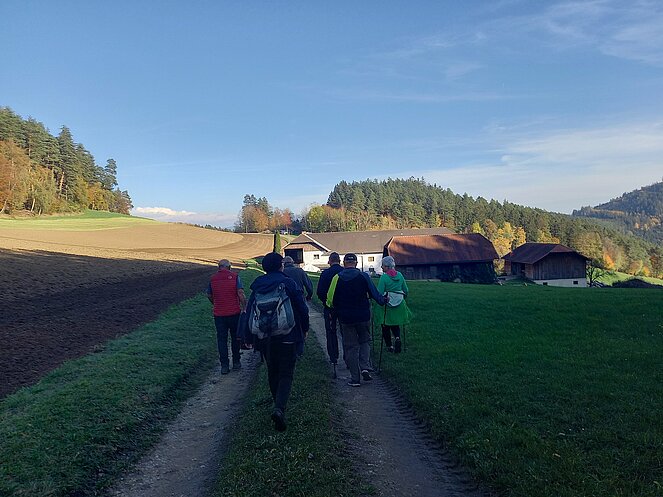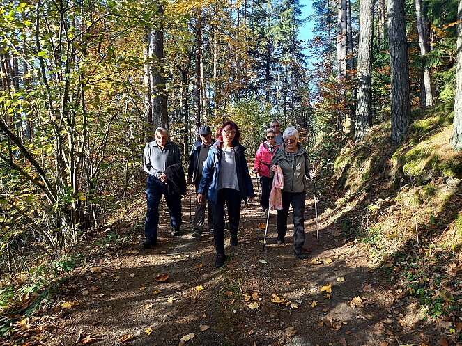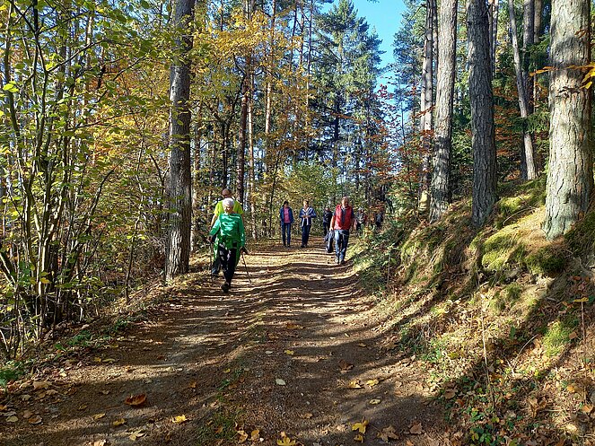 Unsere Wanderung starteten wir in Hirschbach. Und erstmals hat uns Renate als Wanderguide diesen schönen Wandernachmittag organisiert und durchgeführt. Anfangs marschierten wir ein Stück am Güterweg entlang Richtung Unterhirschgraben, bevor es dann bergauf, vorbei am Wildgehege, nach Auerbach ging. Wir folgten bis zum Mader am Berg dem Stoabloßweg von Hirschbach auf wunderschönen Wald- und Wiesenwegen. Immer wieder gab es auch kleine Pausen um die herrliche Herbstlandschaft und die bunten Laubbäume im Sonnenschein zu genießen. Über den Hollnsteiner und das Lieben Kreuz führte uns die Strecke zurück nach Auerbach und hinunter ins Tal nach Hirschbach. Die Wanderstrecke war 8,5 km lang. Den gemütlichen Wanderabschluss machten wir in der Reichenauer Stubn. Herzlichen Dank an Renate für die schöne Streckenwahl - eine bestens gelungene Premiere!.