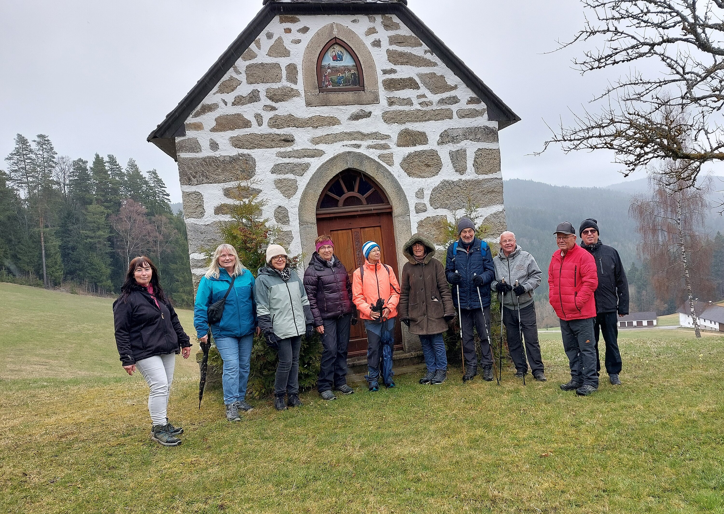 Und wieder einmal hatten wir nicht so gutes Wanderwetter – kühle Temperaturen, wolkenverhangener Himmel, und hin und wieder leichter Schneefall – trotzdem fanden sich 11 Mitglieder zur Wanderung ab Reichenau zusammen, die von Renate organisiert wurde – herzlichen Dank dafür! Unser Ziel war der Herndlsberg mit seiner Kapelle. Der Hinweg führte uns über den „Stock und Steinweg“, vorbei am „Stifter-Poitn“, über eine Forststraße erreichten wir dann den Herndlsberg. Nach einer Rast bei der Kapelle gingen wir passend zur Osterzeit über den Kreuzweg zurück nach Reichenau. Den Abschluss machten wir wieder in der Imbißstube Jenner.
