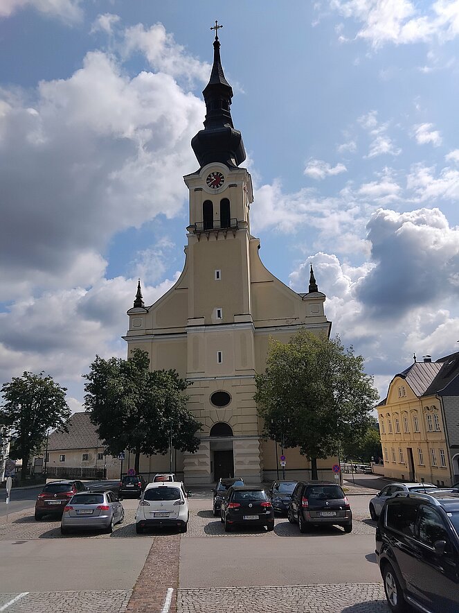 Die schöne Pfarrkirche, auch Mühlviertler Dom genannt, musste besichtigt werden. Sehenswert die "sieben-Todsünden-Kanzel", die von einem Baumstamm getragen wird, um den sich eine Riesenschlange mit sieben Menschenköpfen windet, welche die sieben Todsünden symbolisieren.