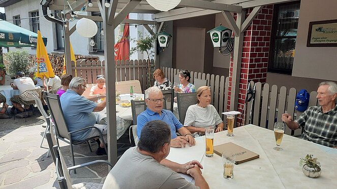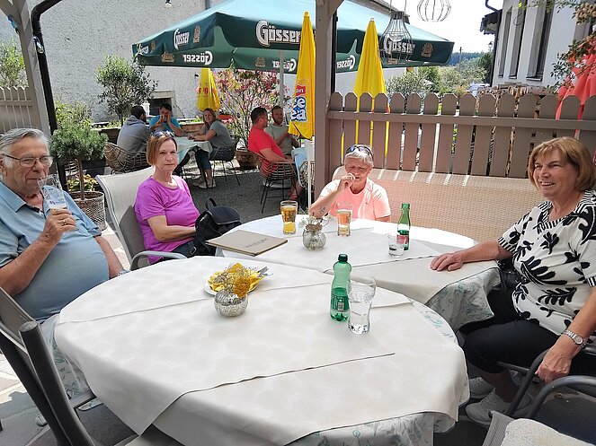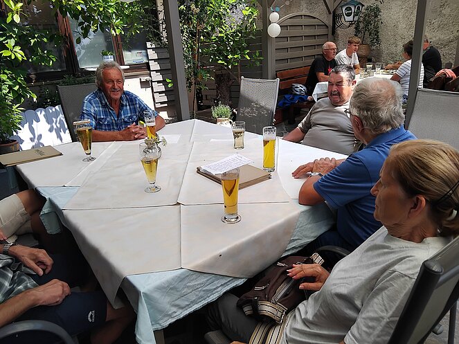Insgesamt nahm die Wanderung eine Zeit von 7:30 bis 12:00 in Anspruch. Die verdiente Rast im Gasthaus Preinfalk fand im Gastgarten bei fast kühlem Wetter einen verdienten Abschluss.