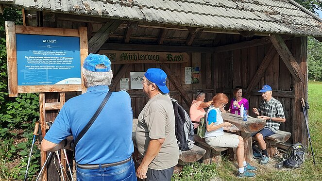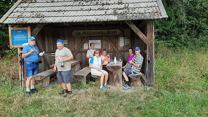 9 Mitglieder vom Pensionistenverband Rottenegg-Walding waren flott und leichtfüssig unterwegs. Über 15,5 km erstreckt sich der 10-Mühlen-Wanderweg in der Gemeinde Reichenthal im oberen Mühlviertel. Ein weiteres Mitglied entschied sich für eine kürzere Variante und machte sich alleine auf den Weg, um sogleich den Aufstieg zum Schloss Waldenfels, das stolz über den Ort Reichenthal thront, in Angriff zu nehmen. Das Schloss konnte nicht besichtigt werden, so konnte man nur neue wunderbare Kleinode bestaunen. Unsere 8 weiteren Mitglieder machten sich auf die längere Wegstrecke von 15,5 km! Etwas Enttäuschung machte sich breit, als eine Mühle in Schutt und Asche lag und sie über diese auch noch klettern mussten.