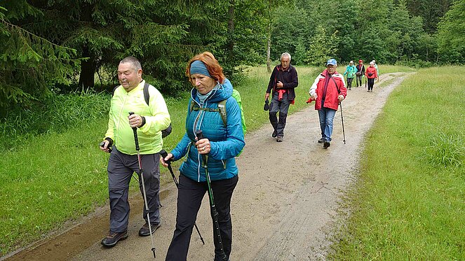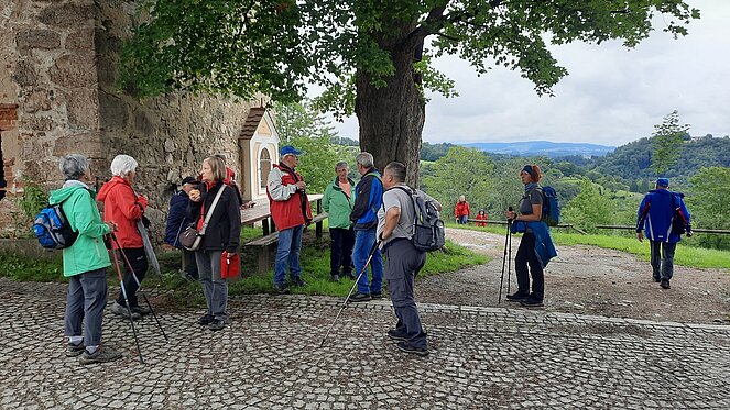 Der diesjährige Landesbergwandertag des PVOÖ fand am 12.Juni in unserer unmittelbaren Nähe im Gemeindegebiet von Feldkirchen statt. Unsere Ortsgruppe Rottenegg-Walding war mit 9 Personen vertreten und wir reisten praktischerweise gemeinsam mit der Mühlkreisbahn zum Start nach Lacken in der Stockhalle an. Von 2 möglichen Strecken wählten wir die längere mit knapp 12 km aus. Der Weg führt von Lacken über Gerling ins Pesenbachtal zum Kerzenstein und weiter zur Jausenstation Fürstberger, wo wir eine kurze Rast einlegten. Zurück ging es über den Gaisberg und Gerling wieder zur Stockhalle Lacken, wo der Wandertag bei Musik, Hendl und Bratwürstl einen gemütlichen Ausklang fand.