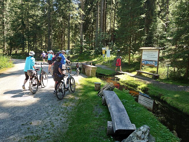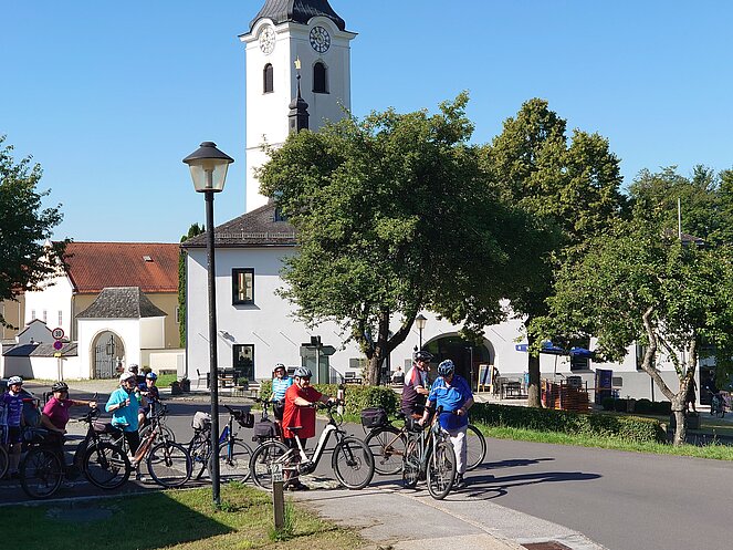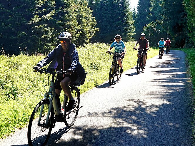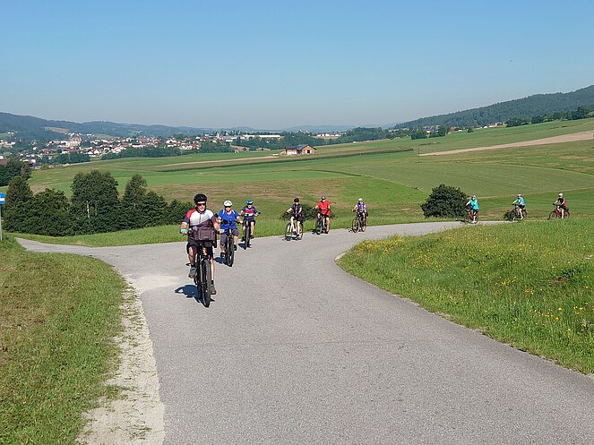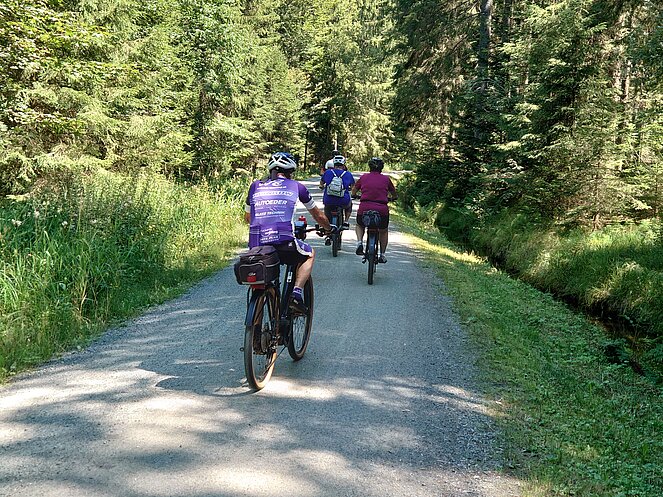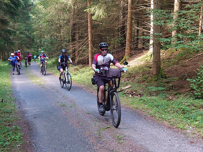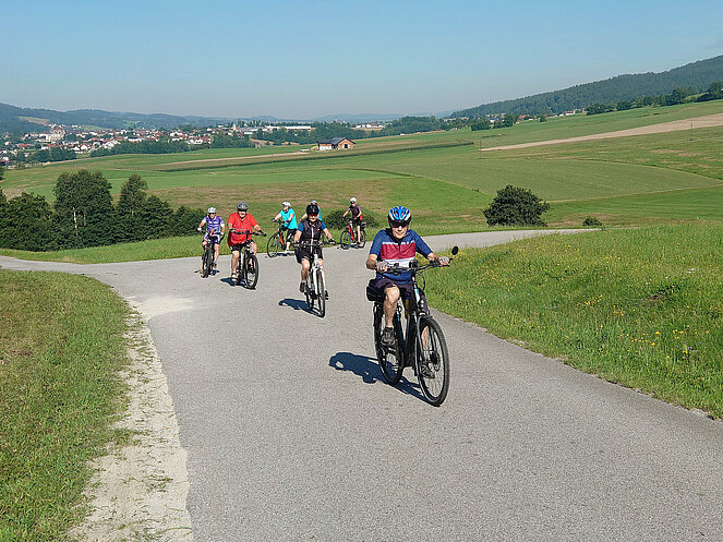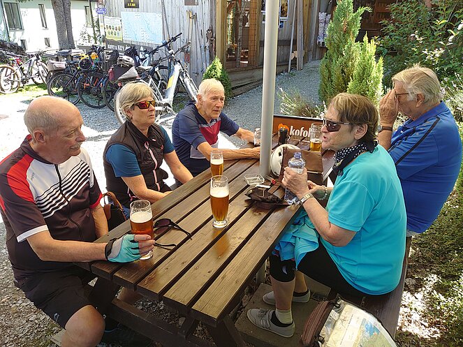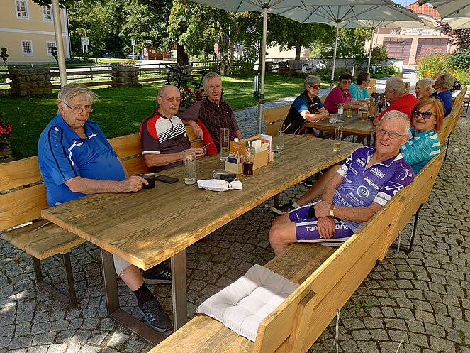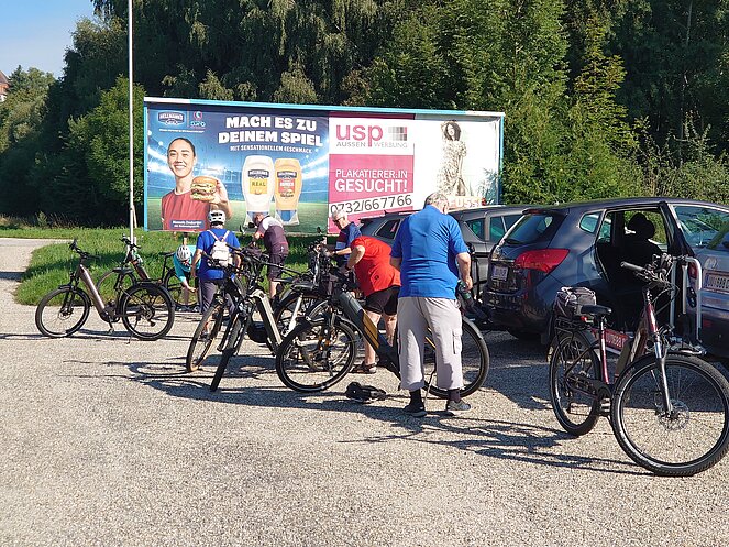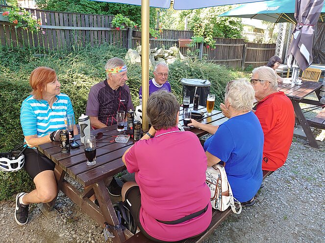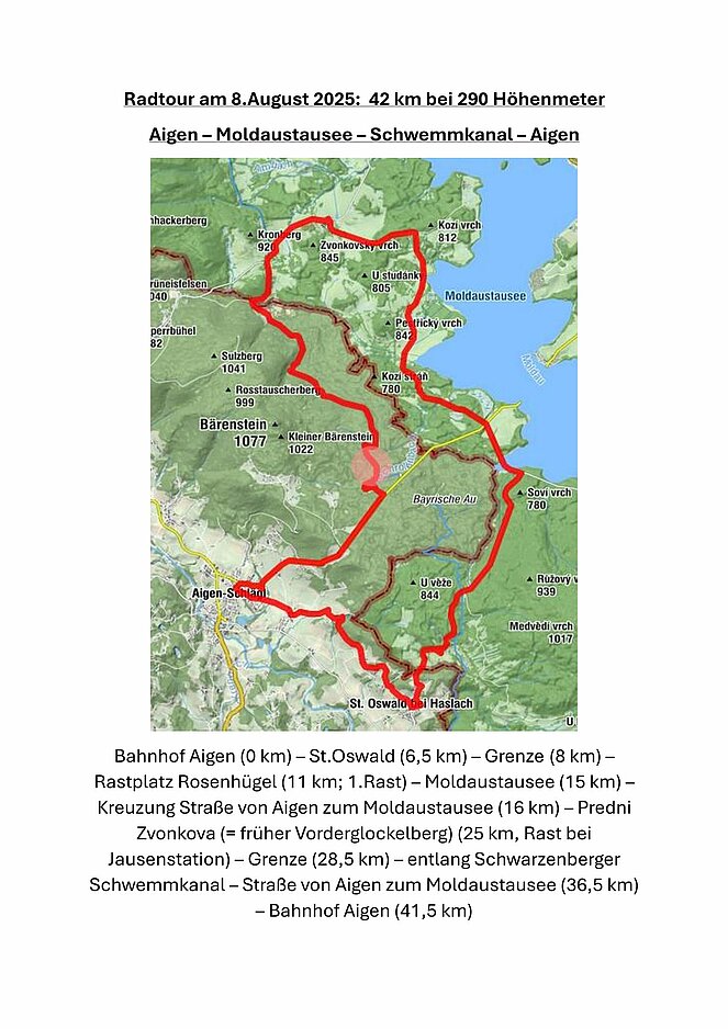 Unser Radguide Enne Richard lud zu einer Tour im Grenzgebiet zwischen oberem Mühlviertel und Tschechien ein und 11 Personen folgten dieser Einladung, d.h. insgesamt waren wir dann 12 Personen. Treffpunkt war 8:30 Uhr beim Sportpark Walding, dann ging es erstmal mit dem Auto nach Aigen. Als Startpunkt für die Radtour wählten wir aus Parkplatzgründen den Bahnhof in Aigen. Bei bestem Radfahrwetter ging es vorerst entlang des Böhmerwaldes nach St.Oswald, wo wir dann Richtung tschechischer Grenze abbogen. Die Grenze war schließlich nach 8 km erreicht. Weiter ging es Richtung Moldaustausee, wobei wir bei 11 km am Kreuzungspunkt Rosenhügel eine erste Rast einlegten. Danach ging es gemütlich bergab, bis wir nach 15 km den Moldaustausee erreichten. Hier genossen wir den Blick über den Stausee und auf der anderen Seite das Hochmoorgebiet der bayrischen Au. Weiter ging es parallel entlang des Moldaustausee, vorerst auf einem wunderbaren Radweg durch tschechischen Wald, der aber leider dazwischen auf ca. 2 km in äußerst schlechten Zustand war. Aber auch dieses Stück schafften wir, sodass wir dann nach 25 km bei Predni Zvonkova (= früher Vorderglockelberg) bei einer Jausenstation eine Rast einlegen konnten. Richard war der Meinung, wenn man in Tschechien ist, dann sollte man auch tschechisches Bier kosten und keiner widersprach. Nach der Rast ging es weiter Richtung Österreich. Die Grenze erreichten wir nach 28,3 km. Eine weitere Rast war in der Jausenstation „Blauer Hirsch“ geplant. Da machte uns leider der Wirt einen Strich durch die Rechnung, indem er auf Urlaub war. Also rauf auf den Sattel und weiter gings entlang des Schwarzenberger Schwemmkanal, bis wir wieder die Straße von Aigen zum Moldaustausee nach 36,5 km trafen. Von dort ging es dann rasant bergab zurück nach Aigen (41,5 km). Den Abschluss bildete ein gemeinsames Mittagessen im Gastgarten vom Stiftsrestaurant von Schlägl, bevor es wieder mit dem Auto nach Hause ging.