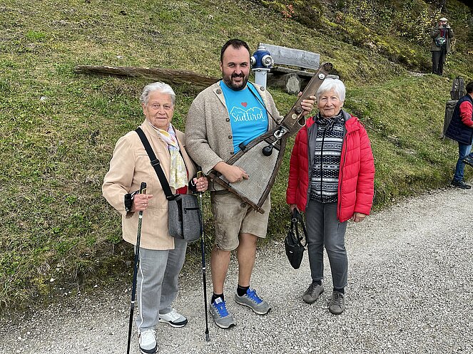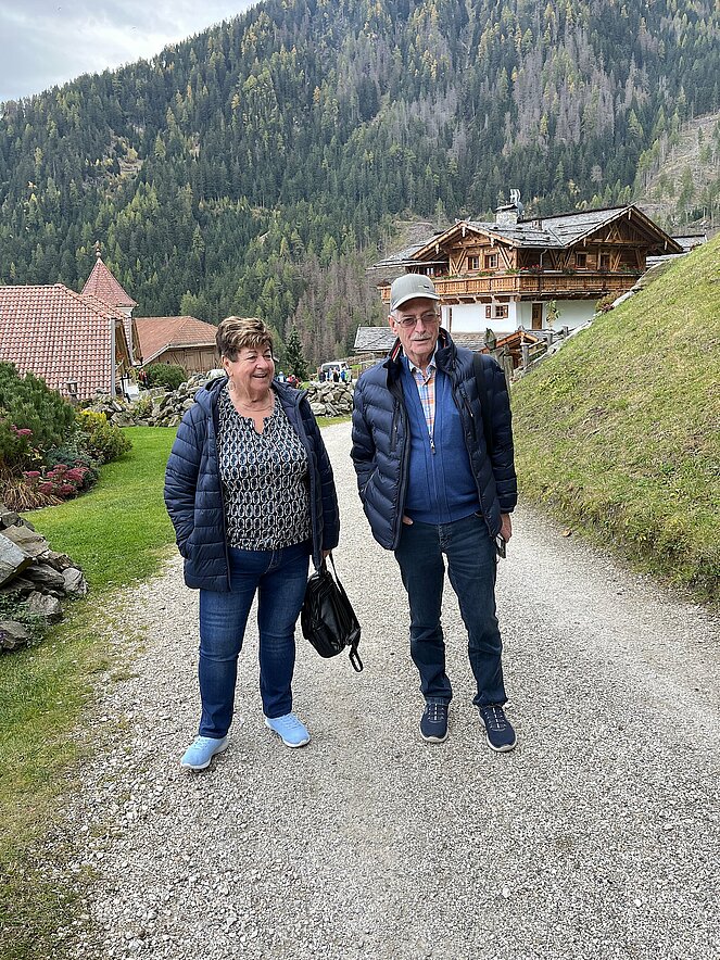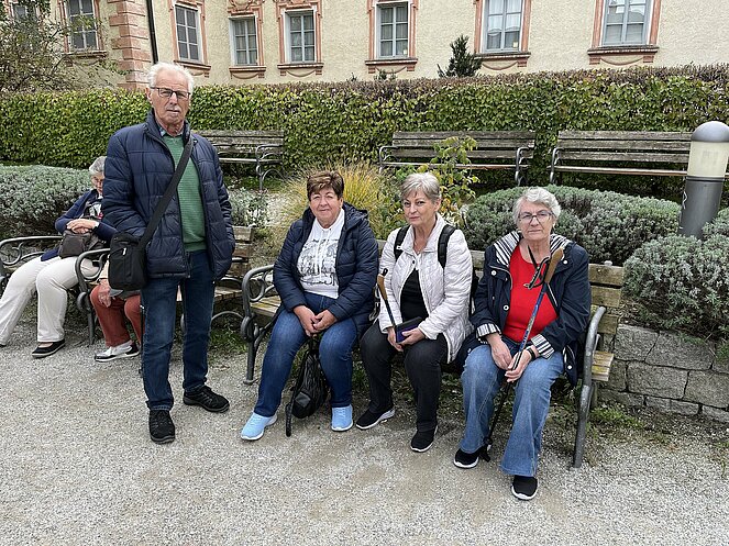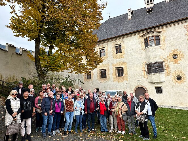 Schon ging es weiter bergauf nach Feldthurns, wo wir eine Schlossführung durch die Sommerresidenz der Brixener Fürstbischöfe, mit Weinverkostung und Käse genießen konnten. Das Ziel der Reise war ein Bauernhof, mit atemberaubendem Blick in die Bergwelt.