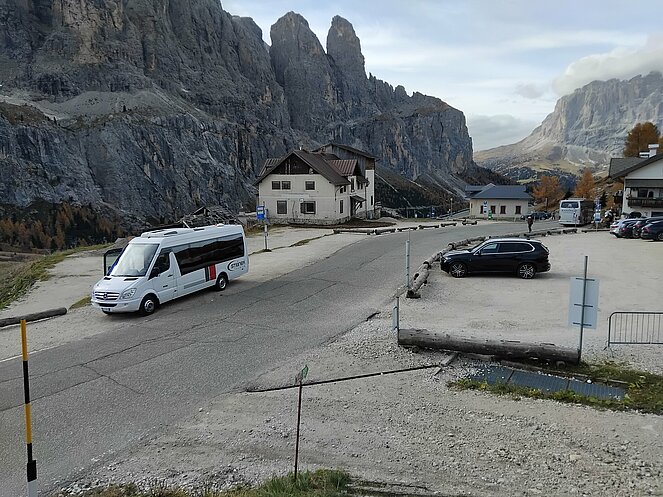 Unser Chauffeur Niki vom Busunternehmer Lehner kutschierte uns mit sicherer Hand durch die grandiose Bergwelt und wir konnten angstfrei die Busfahrt durch das Eisacktal nach Klausen, St.Ulrich durch Wolkenstein auf das Grödner-Joch bestaunen und Eindrücke für zuhause sammeln.