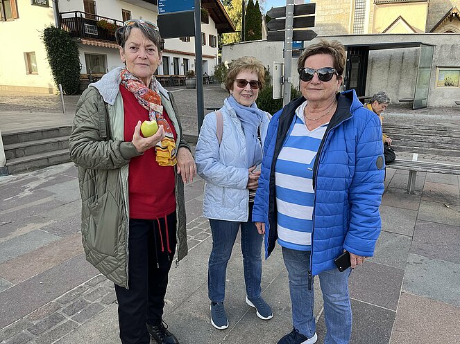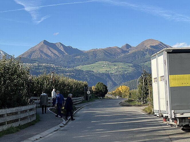 Den ersten Zwischenstopp legten wir in Innsbruck beim Rumerhof zum Mittagessen ein. Nonstop ging es weiter zu unserem Hotel Birkenhof im Apfeldorf Natz-Schabs. Bei einem Spaziergang durch das Apfeldorf konnten wir die großen Apfelplantagen bestaunen. ( Die Äpfel direkt vom Baum schmeckten am besten).