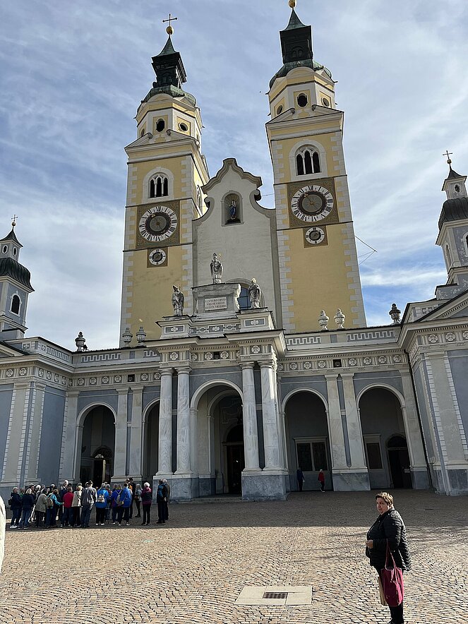Der Dienstag begrüßte uns mit freundlichem Wetter. Der erste Informationsblock führte uns zur Fa. Melix, (Melix heißt Mela der Apfel, und x für Brixen) dem größten Obstverarbeitungsbetrieb im Eisacktal. Nach der Apfelverkostung und interessanten Infos ging unsere Reise weiter nach Brixen in Norditalien, einer antiken Barockstadt. Nach freier Zeit konnte man durch die Altstadt bummeln, einen kleinen Snack zu sich nehmen, um bei der anschließenden Führung durch den mächtigen Brixener-Dom und den in der Nähe liegenden Kreuzgang bestaunen konnte.