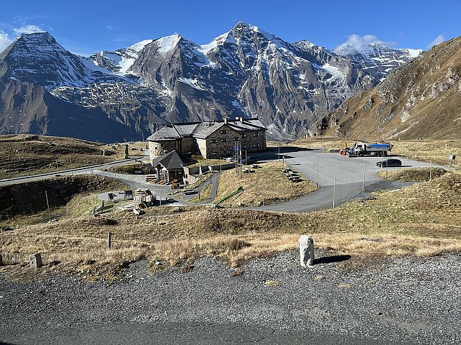 Am Donnerstag, der letzte Tag dieser außergewöhnlichen Reise, führte uns über die Großglockner -Hochalpenstraße, die als hochalpine Gebirgsstraße die österreichischen Bundesländer Salzburg und Kärnten verbindet. Über Heiligenblut ging es in Serpentinen hinauf zur Kaiser-Franz-Josefs-Höhe. Leider lag der Berg im Nebel und nach einer kurzen Stärkung im Restaurant wollten wir uns nicht länger aufhalten und fuhren weiter auf die Salzburger Seite über das Fuscher Törl, wo sich uns ein fulminanter Ausblick mit blitzblauem Himmel bot.