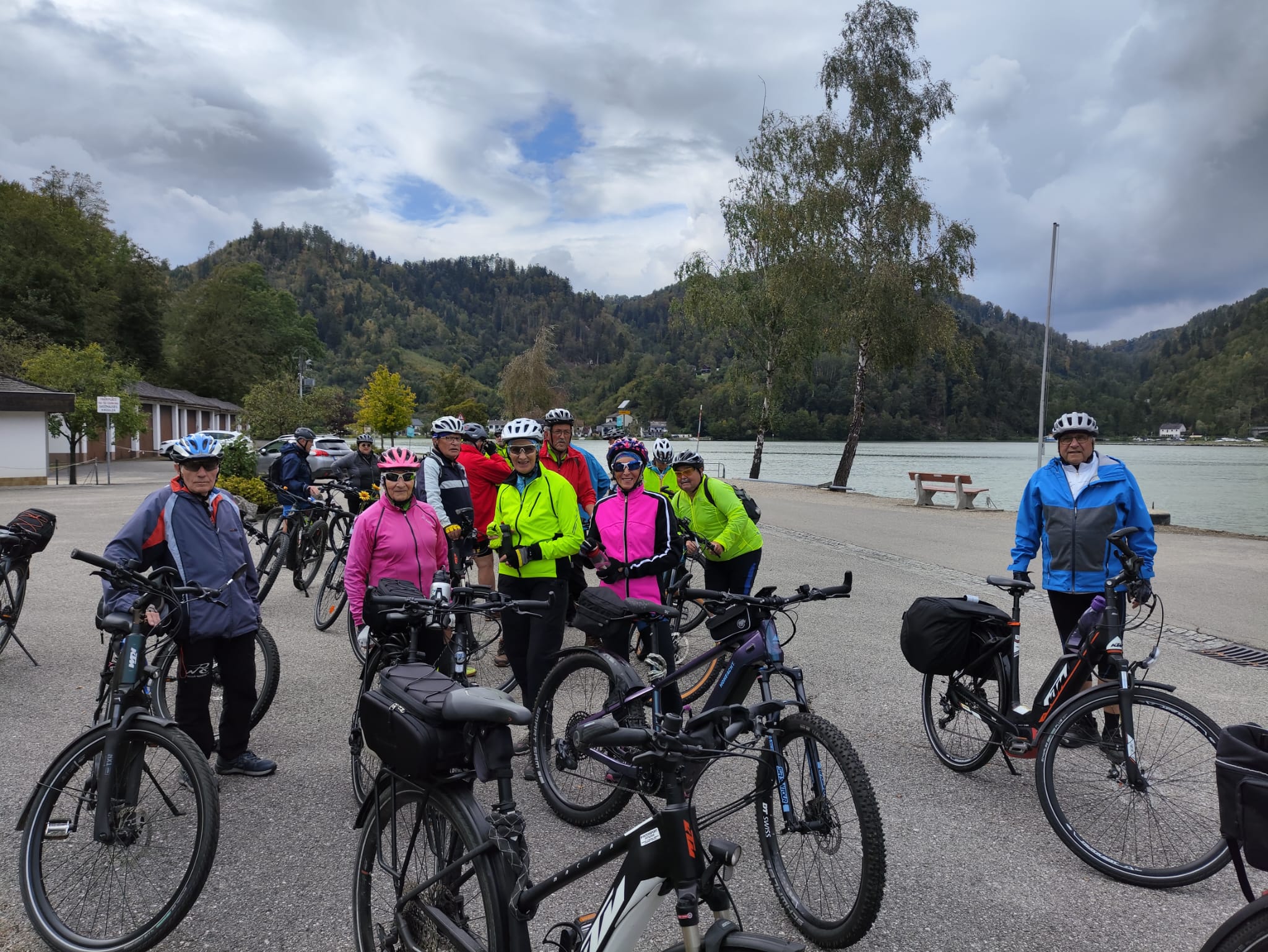 Nach einem heißen Sommer endlich die ersehnte Abkühlung und das durften die Radler aus GrEiLi, Puchenau und Walding/Rottenegg genießen. Am 10. September brachte ein KASTLER-Bus 24 Radler aus diesen Ortsgruppen nach Passau. Rasch ging es durch das mit vielen Schiffstouristen überströmte Passau entlang der Donau-Nordseite zu unserem ersten Stopp in Obernzell. Eine Pause, die so manche für Kaffee, Kuchen und „anderes“ ausnützten. Die Fahrt nach (oder in die?) Kramesau zu unserer Mittagsrast, immer entlang der Donau, einem kurzen Blick hinüber nach Engelhartszell, war dann auch bald erreicht. In der Jausenstation Trautendorfer wurden wir köstlich versorgt. Nach dieser Pause ging es über die Brücke bei Niederranna an die Südseite der Donau. Plötzlich ein Regenschauer. Nachdem einige eine Regenbekleidung angelegt hatten, hörte dieser auch schon wieder auf. Über Schlögen, Inzell und die Kaiserau ging es zum letzten Stopp in Aschach. Zur eigenen Belohnung gönnte sich jeder noch „seine“ Köstlichkeit. Und bald darauf hatten wir nach 88 km (die Puchenauer noch einige km mehr) das Ziel erreicht. Eine sehr gelungene Tour und dass alles unfallfrei und ohne Wetterproblem zu Ende gegangen ist freut den Organisator und Radguide Richard ganz besonders. Leider haben einige wetterempfindsame die Teilnahme kurzfristig abgesagt, schade für diese.