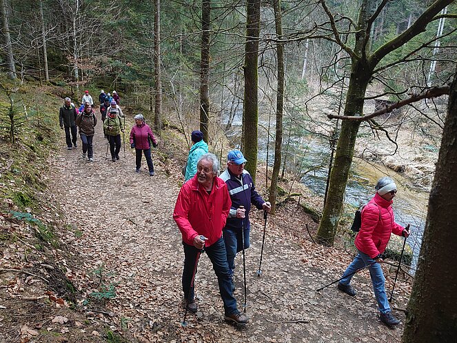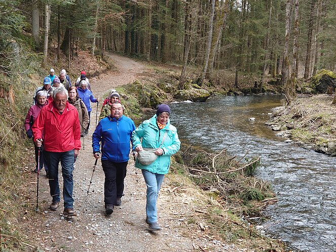 Unsere Wanderführer Pühringer Willi und Höfler Josef luden am 27.März 2025 zur ersten Wanderung in diesem Jahr ein. Sie haben sich dabei ein echtes Gustostückerl ausgesucht. 19 Mitglieder folgten dieser Einladung. In Fahrgemeinschaften ging es nach Haslach an der Mühl zu einem Parkplatz auf einem ehemaligen Fabriksgelände an der Mühl. Nach einer kurzen Wegstrecke auf der Straße ging es gleich linker Hand in einen Wald. Der Weg führte fast eben immer entlang der „Steinernen Mühl“ bis zur Zaglmühle. Dort überquerten wir den Bach und auf der anderen Seite der Mühl ging es wieder über Wiesen und Wald retour zum Parkplatz. Nach etwas über 1,5 Stunden hatten wir die ca. 6 km lange Wegstrecke geschafft. Abschluss war ein gemeinsames Zusammensitzen im Gasthaus Baier in Haslach.