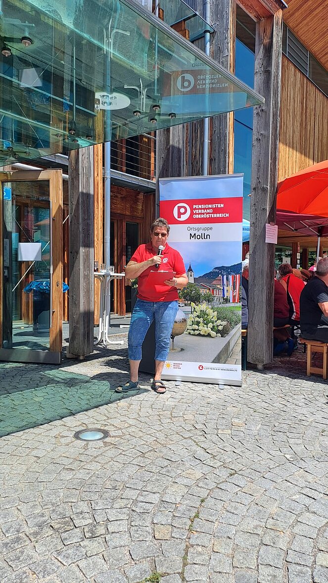 Mit der OG Molln und ihrer Obfrau Veronika Bachmayr verbindet uns eine, bereits mehrjährige, Freundschaft. Wir waren einige Male, zuerst mit Privat Pkw und auch mit dem Bus, bei der Kripperlroas. Die Vizebürgermeisterin von Molln, Ulrike Brunner, sorgte für den Kontakt zwischen Vroni und unserer Obfrau Gerti. 2024 organisierte Gerti für die Mollner das Besichtigungsprogramm für einen Ausflug in unsere Heimat. Heuer lud uns Vroni zum Grillfest ihrer Ortsgruppe ein und wir haben die Einladung gerne angenommen. Als Ortsgruppe aus dem Mühlviertel bekamen wir bei der Begrüßung viel Applaus von den Kirchdorfer Ortsgruppen. Bei Kaiserwetter genossen wir Kistenbratl und Steckerlfisch, Kaffee und selbst gemachte Mehlspeisen. Hut ab vor den Mollner Pensionisten, über 300 Gäste waren gekommen und eine Veranstaltung dieser Größenordnung muß man erst mal bewältigen, aber sie haben das großartig hinbekommen. Im Herbst möchte Vroni wieder einen Ausflug ins Mühlviertel machen und wir werden das gerne wieder organisieren.Vielen Dank für die Einladung, wir kommen gerne wieder.