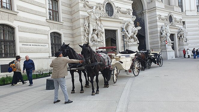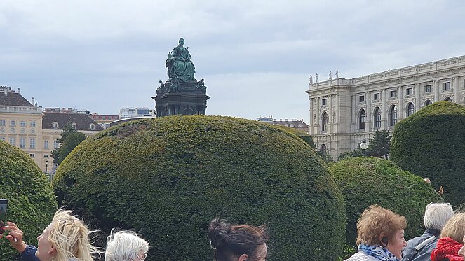 Nach dem Mittagessen im typisch wienerischen Gasthaus Schwabl transportierte uns der Chauffeur durch Wien entlang vieler bekannter historischer und neuer Gebäude. Ein qualifizierter Führer erklärte Details aus den Epochen von den Römern, die ca. im 5. – 6. Jahrhundert abzogen, über die Babenberger bis zu den Habsburgern. Dass der Prater Jagdgebiet war erfuhren wir und ebenso, dass im Bereich der heutigen Ringstraße die Stadtmauer verlief. Wir sahen die Reichsbrücke, das UNO-City-Gebäude, einige Museen, das Parlament usw. Ein kleiner Rundgang über den Stephansplatz bot weitere Sehenswürdigkeiten, wie die Hofburg und den Heldenplatz, Maria Theresia Museum (welches früher die Stallung ihrer Pferde beherbergte), einige Ministerien, das Wiener Rathaus, die Stallungen der Lippizaner von der Hofreitschule und die Elmayer Tanzschule.