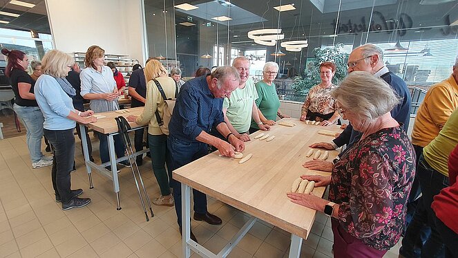 Der letzte Programmpunkt führte nach Bad Leonfelden zur Mühlviertler Landbäckerei. Bei einem Filmvortrag und einer Präsentation lernten wir spannende Daten und Fakten über die Geschichte der Bäckerei und das Bäckergewerbe. Im Anschluss durften alle selbst Hand anlegen und unter fachfraulicher Anleitung Flesserl sowie weiteres Gebäck formen und backen, das wir anschließend mit nach Hause nehmen konnten.