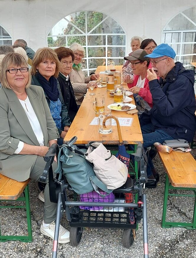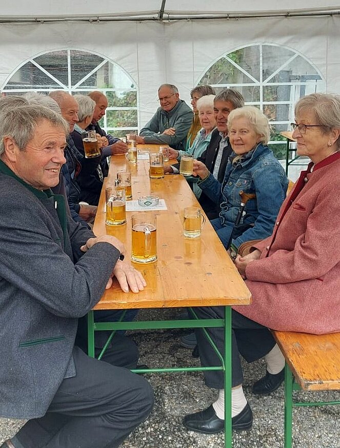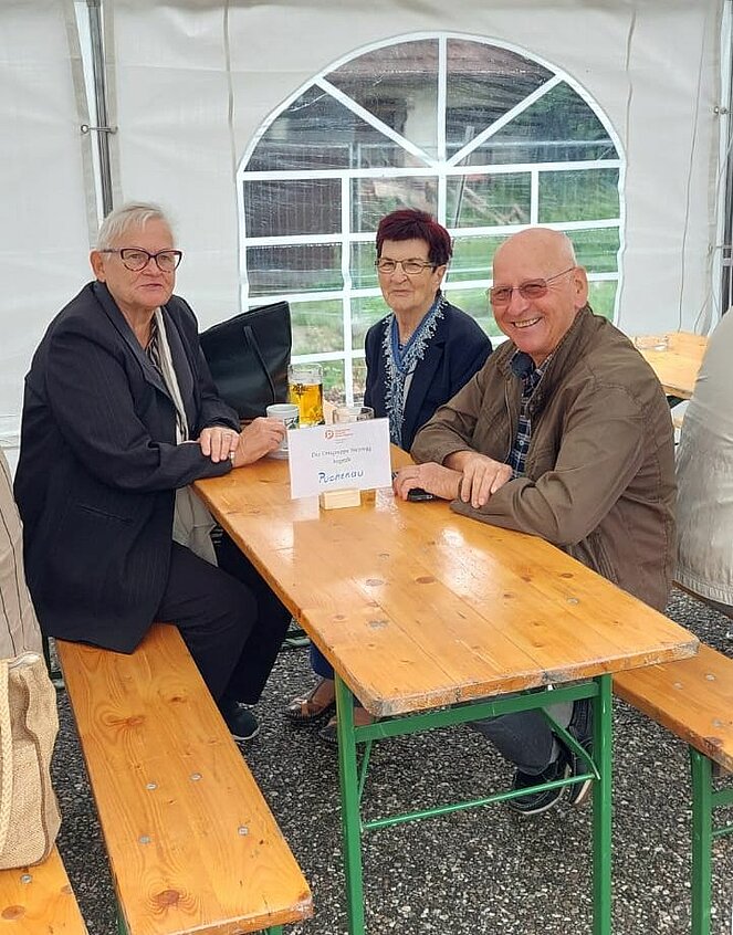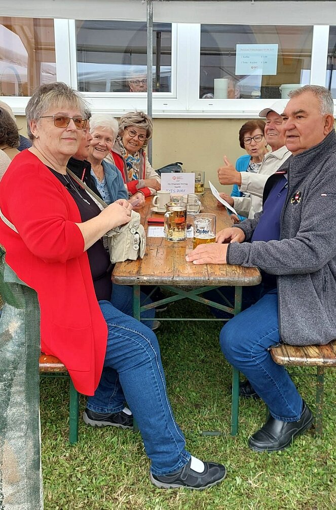 Der Frühschoppen selbst war sehr gut besucht. So waren Bürgermeister Gerhard Hintringer, einige weitere Gemeindevertreter, viele anderer Ortsgruppen mit deren Obleuten und zur riesengroßen Freude unseres Obmanns Franz Hackl auch unsere neue Bundesvorsitzende des Pensionistenverbandes Birgit Gerstorfer zu begrüßen. Sie hat sich tatsächlich die Zeit genommen, um den Steyregger Frühschoppen zu besuchen. Willi der „Grünbacher“ sorgte für die musikalische Unterhaltung. Die Leute vom Grill, der Kuchentheke, der Bier- Wein- und Kracherlbar sowie die ausdauernden Kellnerinnen kümmerten sich um die leiblichen Genüsse. Zum Drüberstreuen durfte auch ein Schätzspiel mit Gewichte-Raten nicht fehlen. Die Vorräte reichten schlussendlich auch dafür, dass einige Besucher den zweifelsfrei gelungenen Frühschoppen als Dämmerschoppen beendeten.
