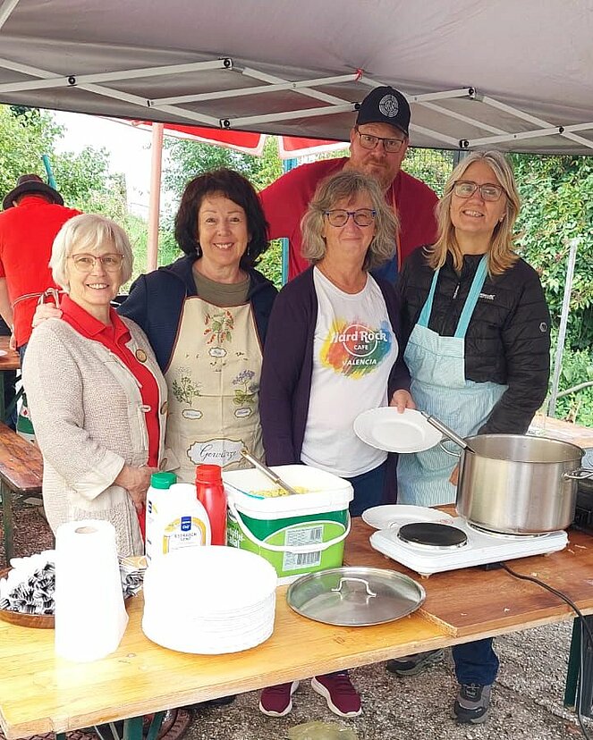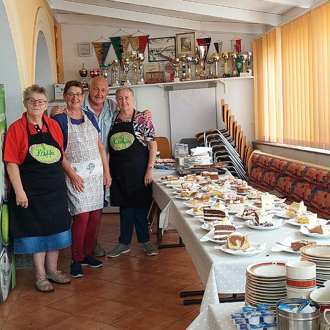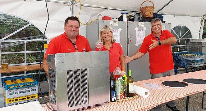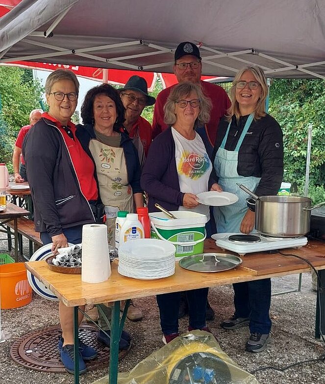 Bei den vielen Teilaufgaben halfen natürlich viele weitere Vereinsmitglieder mit, das Fest auf die Beine zu stellen. Beginnend von der Planung, Personaleinteilung, Zeltbestellung und -aufstellung, Besorgungen jeglicher Art, Lieferung einiger ausgeliehener Geräte, Kuchen backen, Salate richten bis zum Abwasch. Mit einiger Sorge sah man am Morgen zum Himmel, ob nach dem schlechten Wetter an den Tagen zuvor, der Wettergott nicht doch besseres bringen könnte. Der Vormittag war dann zwar etwas kühl, aber außer kurzen Regengüssen am späten Nachmittag gab es keine Niederschläge.