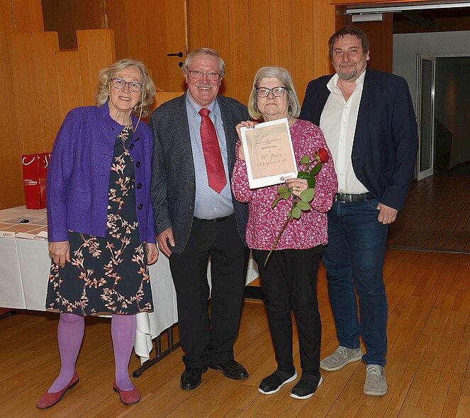 Nach der Wahl gab es 24 Ehrungen für langjährige Mitglieder. Neben 10, 15, 20 Jahre Mitgliedschaft konnte unser Vorsitzender mit großer Freude die Urkunde mit Präsent an Ingeburg Hofer für 30 Jahre, Peter Grassnigg für 35 Jahre, Paula Althuber für 45 Jahre und Franz Wagner für 50 Jahre, überreichen.