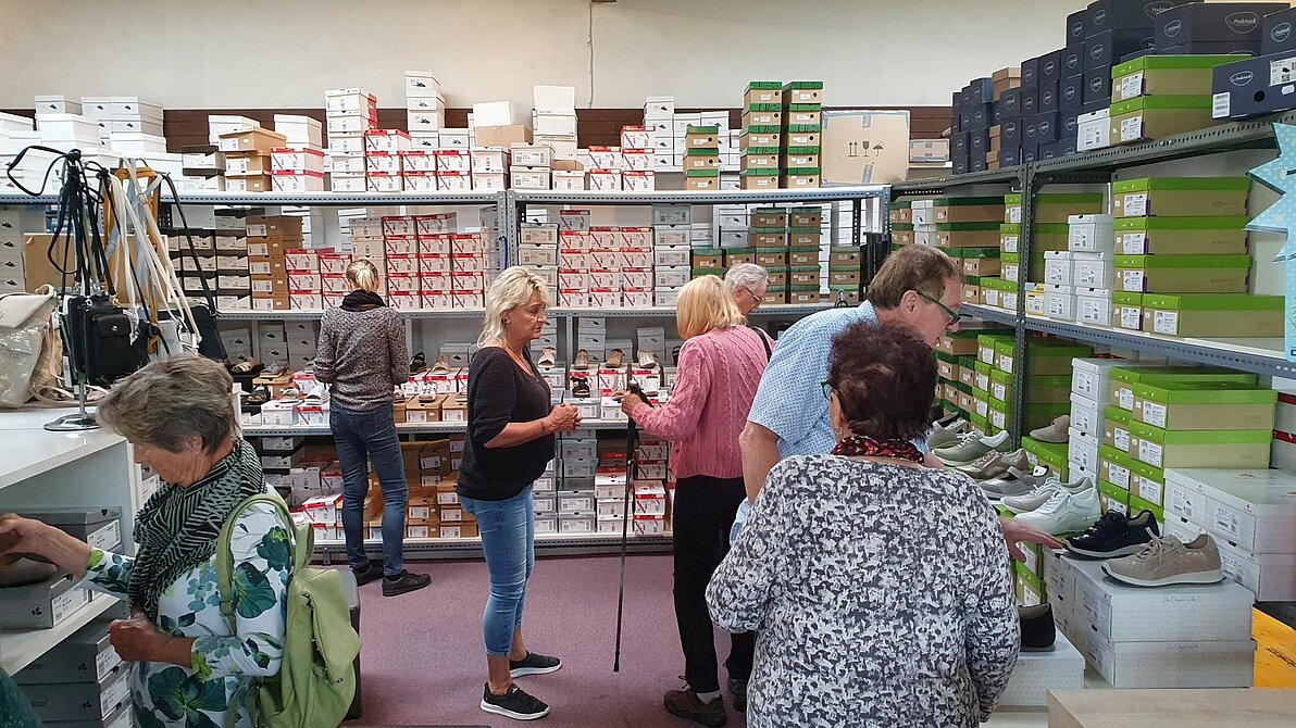 In der Schuhfabrik Megaflex in Edt bei Lambach bekamen wir viele Informationen über die Produktion der Schuhe, z. B. dass nur höherwertige Schuhe in EU-Ländern um Österreich, wie Slowenien, Slowakai, Rumänien usw. aus Zeit und Personalkostengründen produziert werden. Im Gegensatz dazu werden billige Schuhe zumeist in China oder Bangladesch hergestellt. Auch der Aufbau eines Schuhes, der die Höherwertigkeit ausmacht, wurde uns erklärt. Danach konnten wir nach Herzenslust Schuhe probieren und einkaufen. Ein Frühstück gab es bereits vor dem Vortrag. Danach verbrachten wir die Zeit bis zur Weiterfahrt des Busses mit einer Wein- und Mostverkostung.