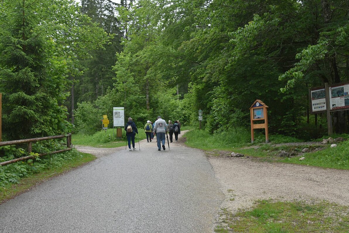 Während der relativen kurzen Reise nach Hinterstoder wurde entschieden, wer mit einem Shuttlebus vom Parkplatz zum Gasthaus Polsterlucke gefahren werden möchte. Direkt sehen konnten den Schiederweiher, der eigentlich ein aufgestauter Fluss – die krumme Steyr – ist und 2018 im Fernsehen zum schönsten Platz gekürt worden ist, leider nur diejenigen, die zu Fuß den Weg zum Gasthaus Polsterlucke nahmen.