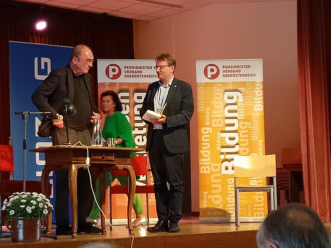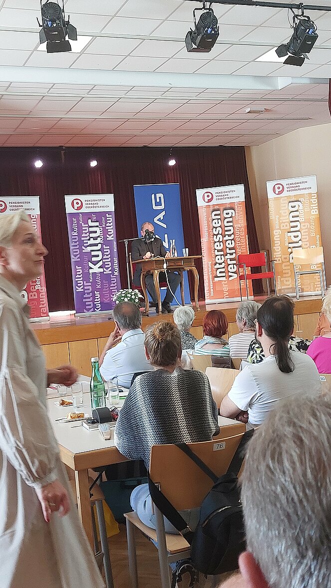Sehr gut besucht war die Veranstaltung im VH Dornach, zu der neben dem PV OÖ auch der Bezirk UU einlud. Robert Menasse, ein bekannter österreichischer Schriftsteller, las aus seinem Buch „Die Welt von morgen – ein souveränes demokratisches Europa – und seine Feinde“. Ein Rückblick auf die Welt von gestern – vor 1914, der Aufstieg der Nationalisten, der Europa letztendlich auslöschte, bevor dann ab 1945 Visionäre das „Friedensprojekt Europa“ gestalten, Grenzen fallen – aber dieses gemeinsame Europa ist heute durch nationalistische Politiker wieder sehr in Gefahr.