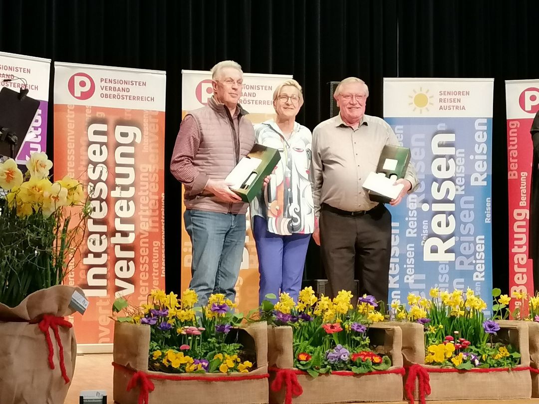 Einen hohen Mitgliederzuwachs konnten die Vorsitzenden Franz Hackl und Hans Schwarz in ihren Ortsgruppen Steyregg und Vorderweißenbach verzeichnen. Durch die Anzahl ihrer Neuwerbungen belegten sie den 6. Platz in der Gesamtwertung der OÖ Landesorganisation und konnten dafür Auszeichnungen von Landesvorsitzender Birgit Gerstorfer bzw. Landessekretärin Mag.a Jutta Kepplinger entgegennehmen. Herzliche Gratolation!