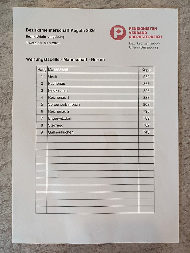 Das jährliche Bezirkskegeln im Kremstalerhof
