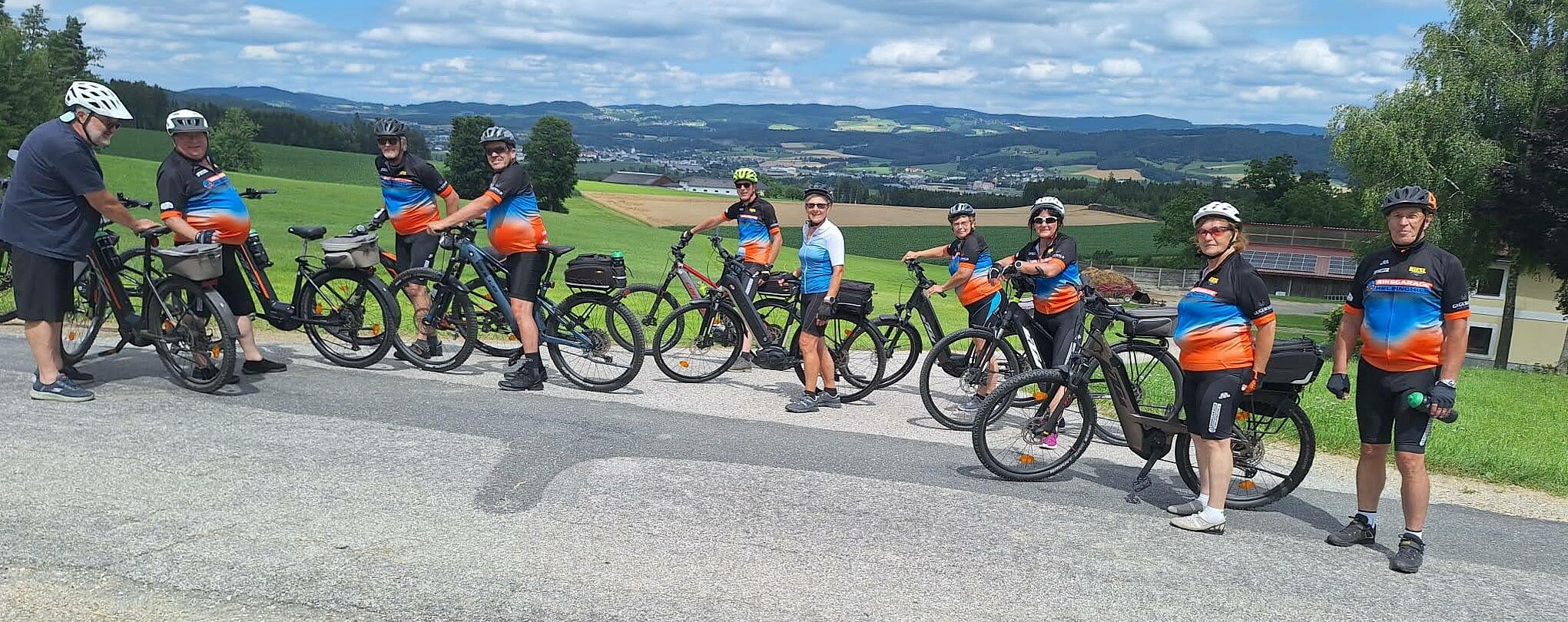 Am Mittwoch, 23 Juli fand die monatliche Radausfahrt der OG Vorderweißenbach bei idealem Wetter statt. Unser Rad Guide Stefan Grünzweil hat wieder eine sehr schöne Runde für uns zusammengestellt. Der Start erfolgte in Freistadt, dann nach Kefermarkt-Richtung Gutau-Selker-Lest-Trölsberg zurück nach Freistadt. Insgesamt 48 km und 930 hm. Zwischendurch stärkten wir uns beim Mittagessen in Selker. Nach der Ankunft in Freistadt gab es noch ein Seiterl im Hotel Freigold. Danach gab es in Vorderweißenbach bei einen Grillfest im Pfarrhof noch einen kurzen Besuch.