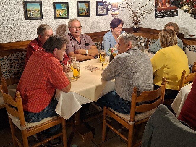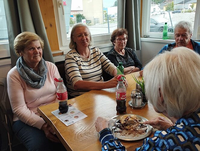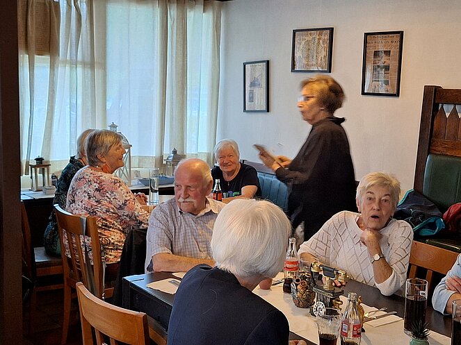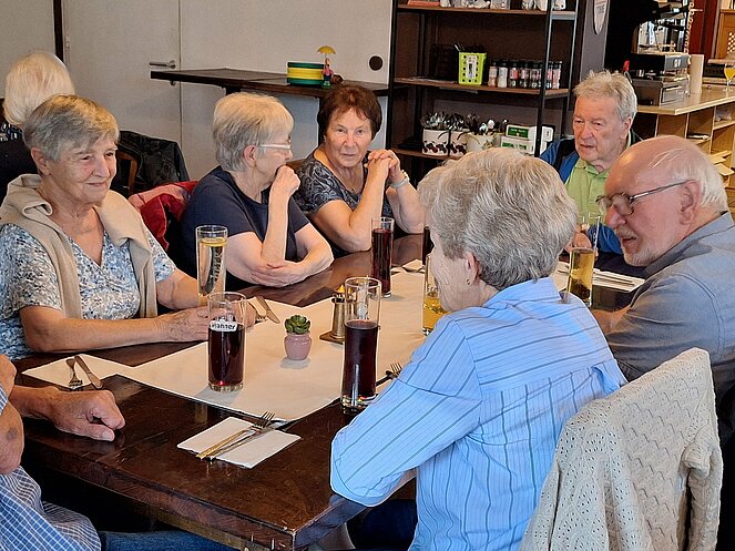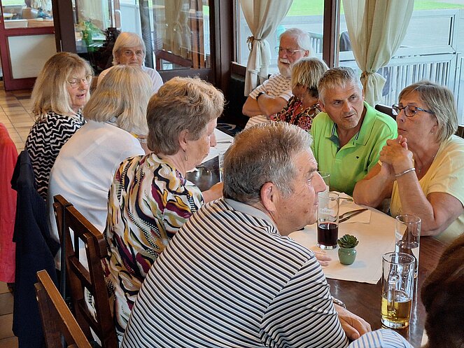 Rund 35 Pensionist: innen treffen sich zu ihrer traditionellen Einkehr in umliegenden Gaststätten der Region. Die Treffen haben sich längst zu einem festen Ort der Begegnung, des Austauschs und der Gemeinschaft entwickelt.