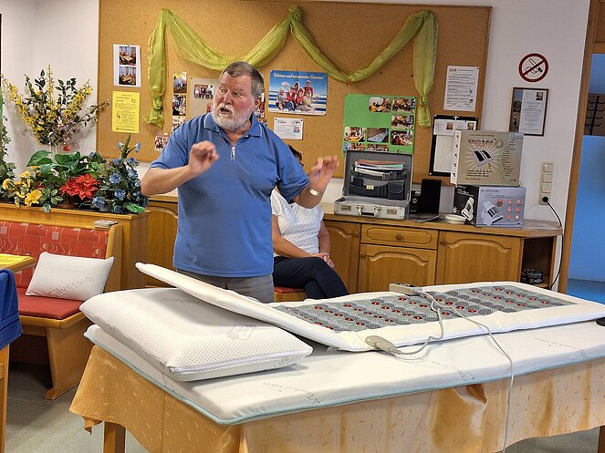 Natürlich ging es auch um entsprechende Produkte. Angefangen von Infrarot Massage Polstern, entsprechende Matratzen Auflagen, bis hin zu einem Milben Staubsauger, der für Sauberkeit im Raum sorgt und besonders für Allergiker ein Thema sein kann. Abschließend gab es eine kleine Spende für die Ortsgruppe seitens der Firma RehaMed.
