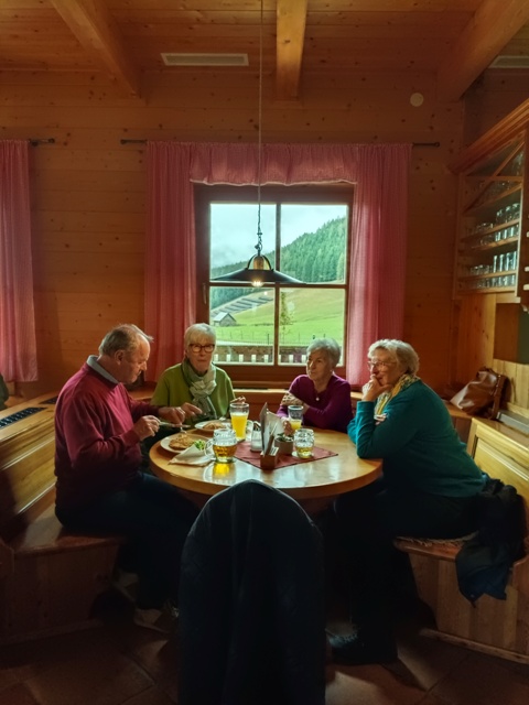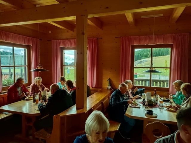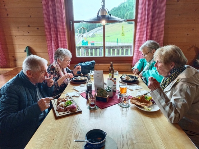 Hungrig von so viel Kultur und PS-Geschichte, machten wir anschließend Halt auf der Sportalm Kaiserau. Bei einem herzhaften Mittagessen in gemütlicher Atmosphäre wurde gelacht, erzählt und natürlich ausgiebig geschlemmt – schließlich gehört gutes Essen zu einem gelungenen Ausflug einfach dazu.