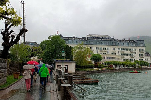 Bei Regenwetter starten wir, fünf Mitlieder der OG Attersee und 33 Mitiglieder der OG St. Georgen/Attergau, um 07:30 Uhr vom Freizeitzentrum in St. Georgen mit unserem Reiseunternehmen Steinbichler Richtung Zell am See. Die Fahrt ging über Salzburg, Bischofshofen, Bruck an der Glocknerstraße nach Zell am See. Dort angekommen wurden wir vom Stadtführer bereits erwartet. Dieser führte uns durch den Ortskern von Zell am See und endete beim alten "Grand Hotel" am Zeller See. Die Führung war sehr interessant und informativ. Anschließend hatten wir, bevor es zum Mittagessen im "Kupferkessel" ging, noch Zeit den Ortskern auf eigene Faust zu erkunden. Der Regen war dabei unser ständiger Begleiter.