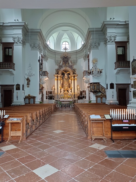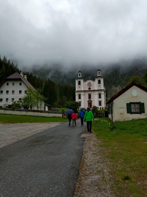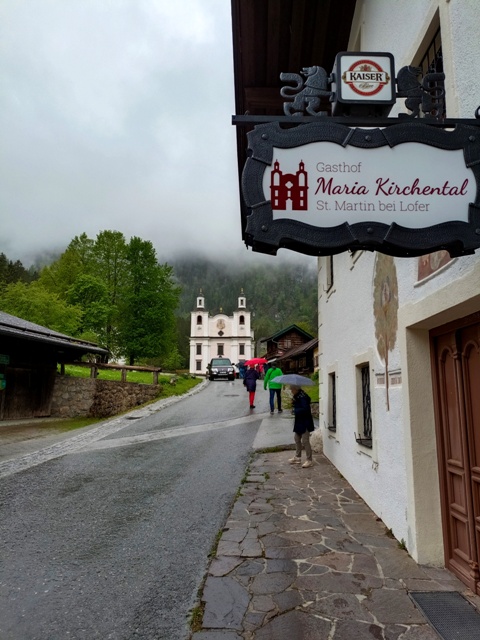 Nach einem ausgiebigen und guten Essen ging die Fahrt weiter nach St. Martin bei Lofer. Hier besuchten wir die Wallfahrtskirche Maria Kirchental. Diese liegt eingebettet zwischen Bergen auf 900 m. Ein sehr stiller und ruhiger Ort. Die Kirche ist dezent ausgestattet, mit einem sehr schönen Altar. Auf dem Gelände rund um die Kirche befinden sich noch einige Gebäude, darunter ein Gasthof und ein Kiosk. Beide waren leider geschlossen.