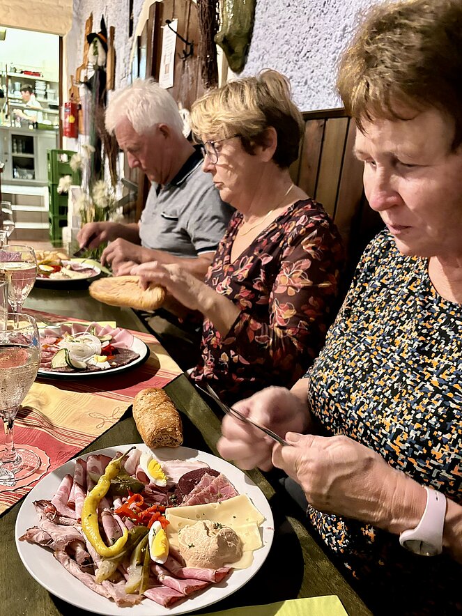 Der erste Tag unseres Abenteuers begann mit Vorfreude und einer angenehmen Reise in das malerische Waldviertel, genauer gesagt nach Raabs an der Thaya. Auf dem Weg dorthin machten wir einen spannenden Stopp bei der Zimmermann Teigwaren und der Glasmacherei Kristallium von Erwin Weber in Moorbad Harbach. Hier konnten wir die Kunstfertigkeit und Leidenschaft erleben, die in die Herstellung dieser regionalen Produkte fließt. Nach unserer Ankunft im Stadthotel Raabs an der Thaya checkten wir ein und ließen uns beim Abendessen im Hotel verwöhnen. Die Atmosphäre war herzlich und einladend, und es war schön, den Tag gemeinsam ausklingen zu lassen. Während einige von uns es sich im Hotel gemütlich machten, nutzten andere die Gelegenheit für einen abendlichen Spaziergang durch die charmante Stadt. Der Rest genoss den Wellness-Bereich des Hotels – eine perfekte Möglichkeit, um den ersten Tag entspannt abzuschließen.