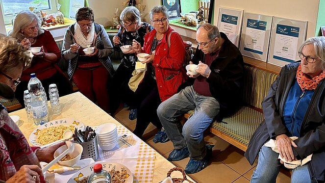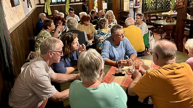 Am zweiten Tag führte uns unser Weg nach Felling zur Perlmutt-Manufaktur, wo wir von Geschäftsführer Rainer Mattejka herzlich empfangen wurden. Es war faszinierend zu sehen, wie aus einfachen Materialien wunderschöne Kunstwerke entstehen. Nach diesem inspirierenden Besuch fuhren wir weiter nach Retz, wo ein köstliches Mittagessen auf uns wartete. Ein anschließender Spaziergang zur Windmühle und eine Kellerbesichtigung rundeten unseren Aufenthalt in Retz ab. Bei strahlendem Sonnenschein genossen wir anschließend einen schnellen Kaffee, bevor es zum Hexenstadl nach Röschitz ging – ein Heuriger voller Geselligkeit und guter Laune! Es war ein unvergesslicher Tag voller Lachen und Genuss.