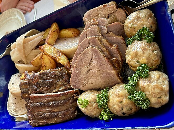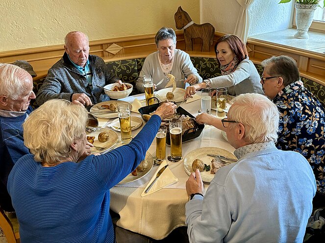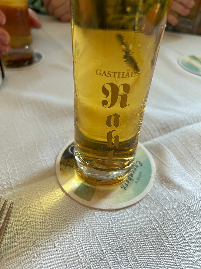 Nach der informativen Führung wurden wir in den privaten Räumen des Schlossherren Magister Harald Seyrl mit einem edlen Tropfen aus der Schlossapotheke verwöhnt. Aufgrund der langen, aber äußerst spannenden Führung mussten wir leider bald Abschied nehmen, denn in der Rablschenke (Gemeinde Gschwandt) erwartete uns ein köstliches Essen in Form eines Brat‘l in der Rein!