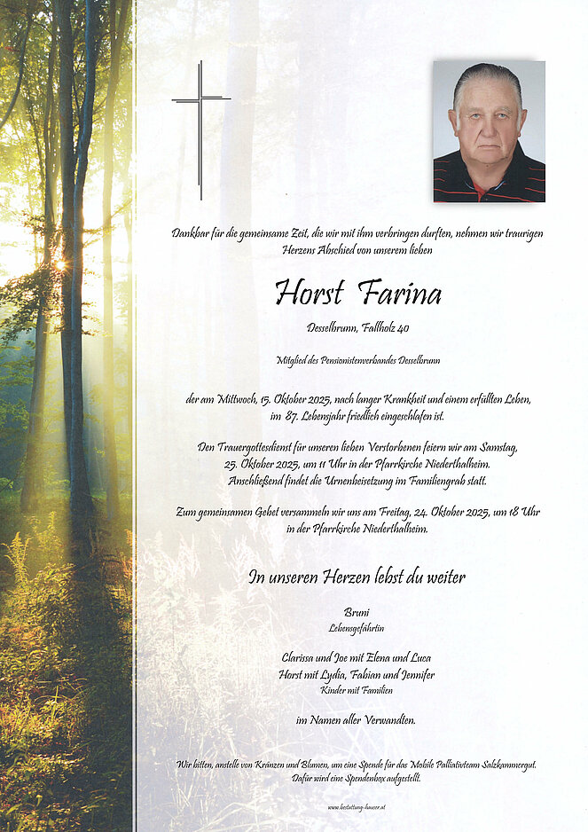 der am Mittwoch, 15. Oktober 2025, nach langer Krankheit und einem erfüllten Leben, im 87. Lebensjahr friedlich eingeschlafen ist.