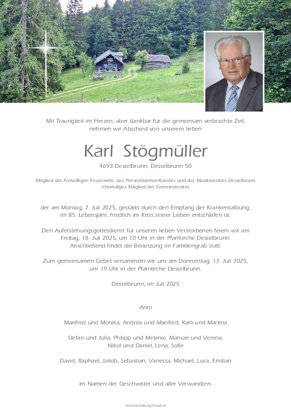Wir wünschen Karl eine schöne Reise und seinen Familienmitgliedern,