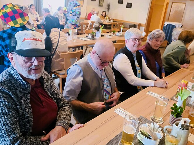 Insgesamt 53 Mitglieder und Mitgliederinnen folgten der Einladung, wobei die große Mehrheit in fantasievollen Masken und Kostümen erschien und für ausgelassene Stimmung sorgte. Für das humoristische Highlight des Nachmittags waren Manfred und Greti verantwortlich. Mit ihren pointierten Gaudi-Geschichten strapazierten sie die Lachmuskeln der Anwesenden und sorgten für einen kurzweiligen Nachmittag voller Heiterkeit. Die Ortsgruppe freut sich über den starken Zusammenhalt und bedankt sich bei allen Gästen, die diesen Tag zu einem so gelungenen Erlebnis gemacht haben.