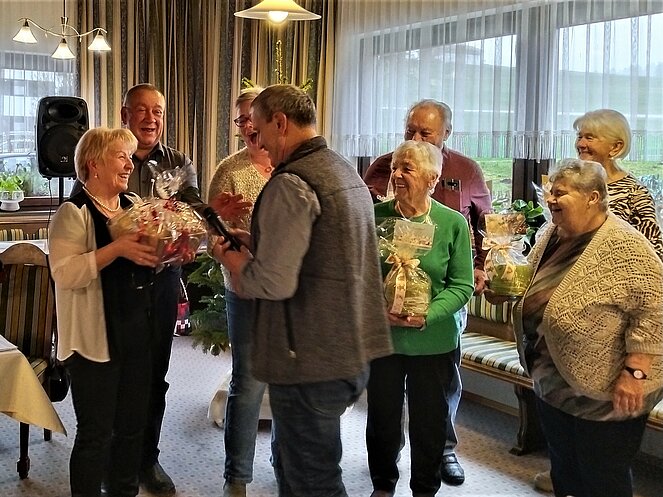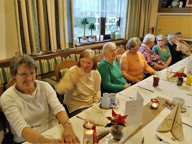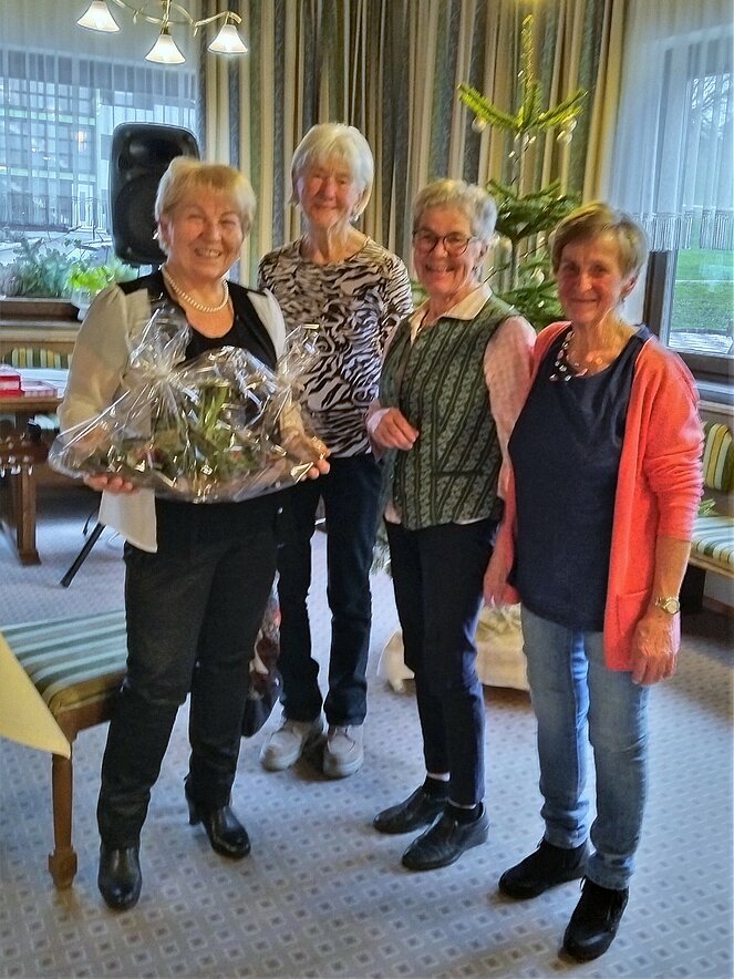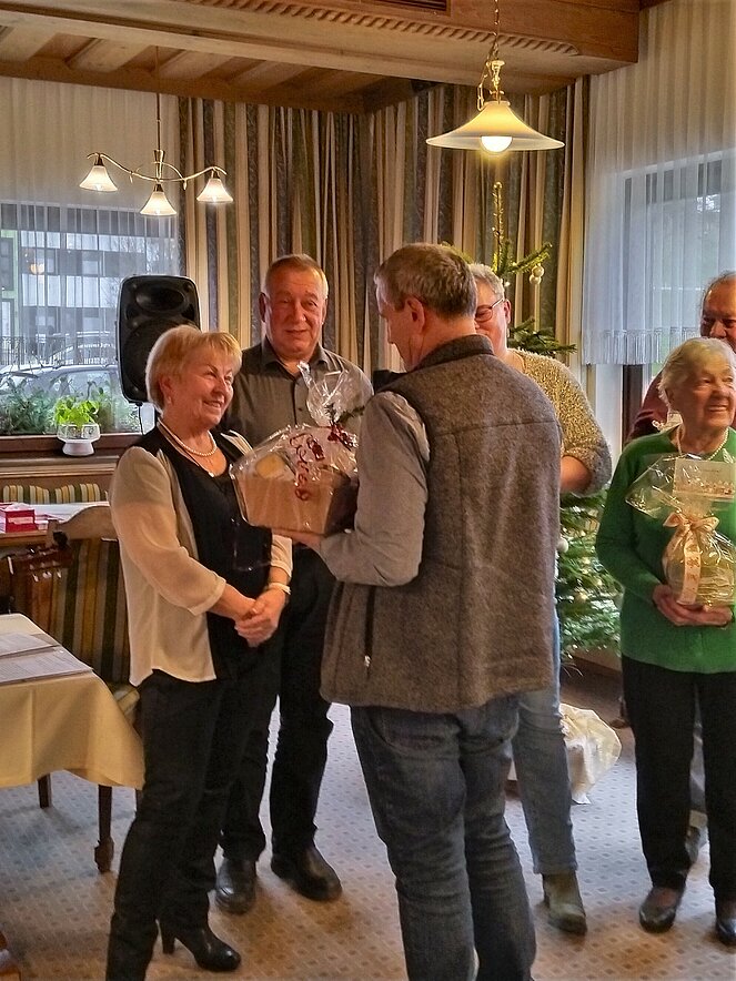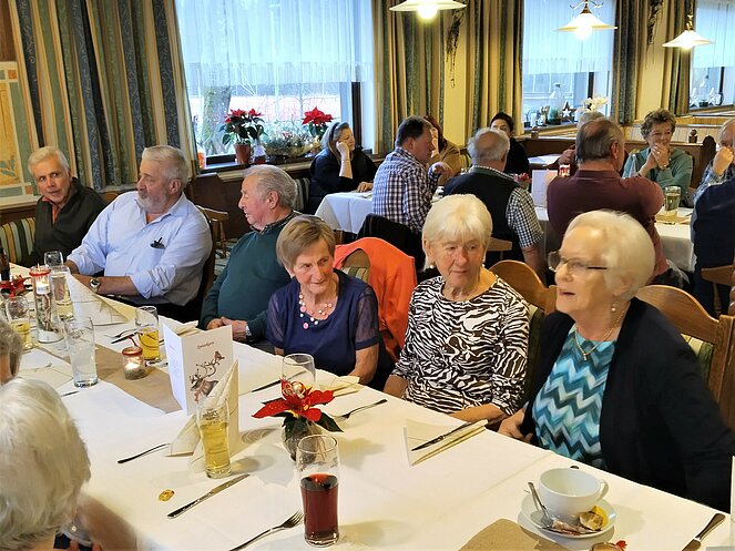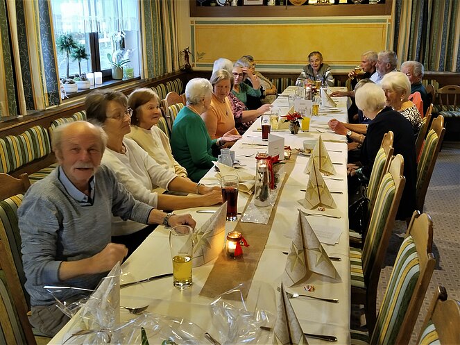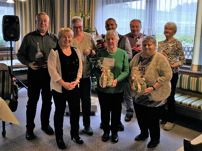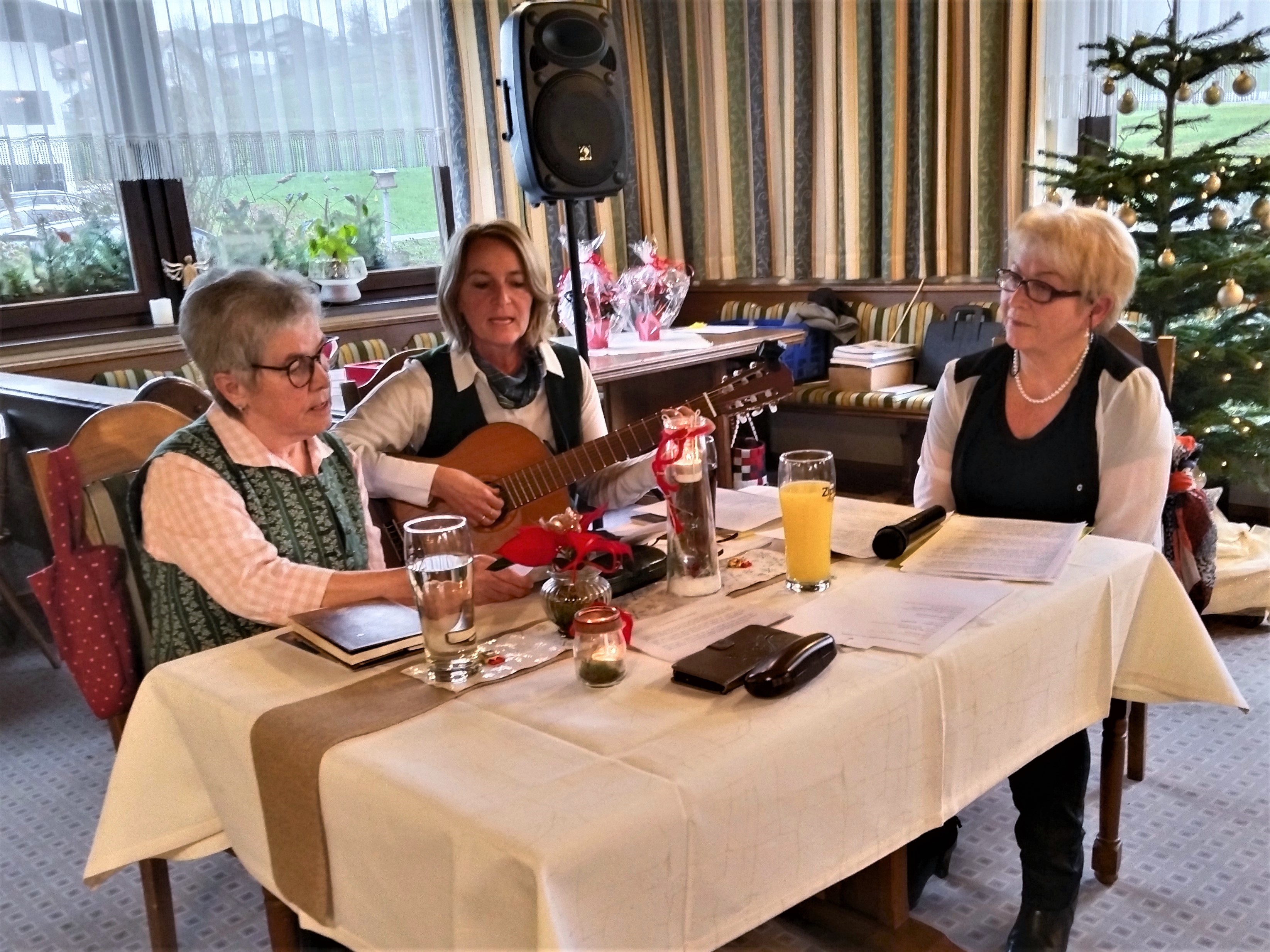 Mit der musikalischen Umrahmung sorgten Anni und Gerlinde mit Gitarre und Gesang für vorweihnachtliche Stimmung. Besinnliche und lustige Gedichte von unserer Vorsitzenden sorgten für einen feierlichen Rahmen. Auch ein lustiges geistiges Keksrezept von Gertraud Eisterer erheiterte den Nachmittag.Vorstandsmitglieder und Mitgliedsbetreuer erhielten kleine Geschenke als Dank für ihre Arbeit. Zum Abschluss dieser besinnlichen Weihnachtsfeier wurde gemeinsam gesungen.