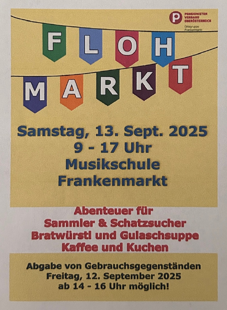 Wir laden ein zum Flohmarkt der Ortsgruppe Frankenmarkt am 13.09.2025