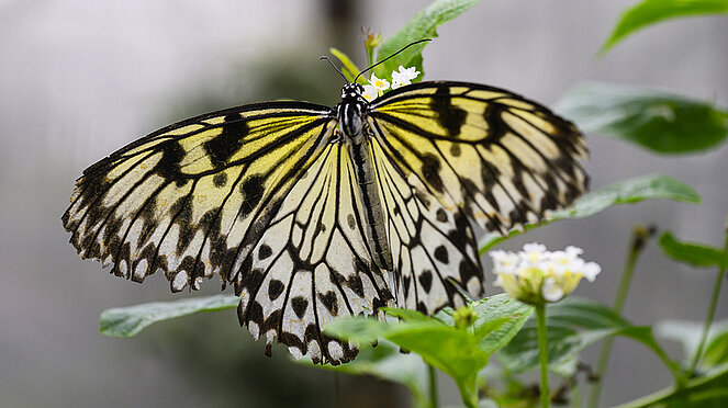 Anschließend führte uns unser Ausflug weiter in den botanischen Garten nach Linz. Im Schmetterlingshaus konnten wir viele verschiedene Schmetterlinge bewundern. Auch Raupen entdeckten wir, die sich oft erstaunlich gut an ihre Umgebung angepasst hatten. Eine davon hatte sich sogar auf die Fototasche unseres Fotografen verirrt und musste behutsam wieder zurückgebracht werden.