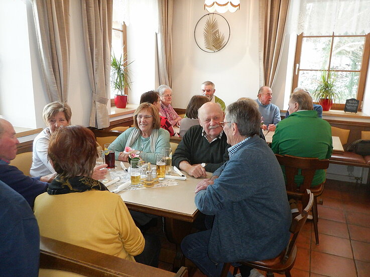 Zum Abschluss des Kegeljahres trifft sich die Kegelgruppe immer zum Essen im Gasthaus “Weisse Taube”. Kleine Geschenke und Aufmerksamkeiten werden übergeben:
