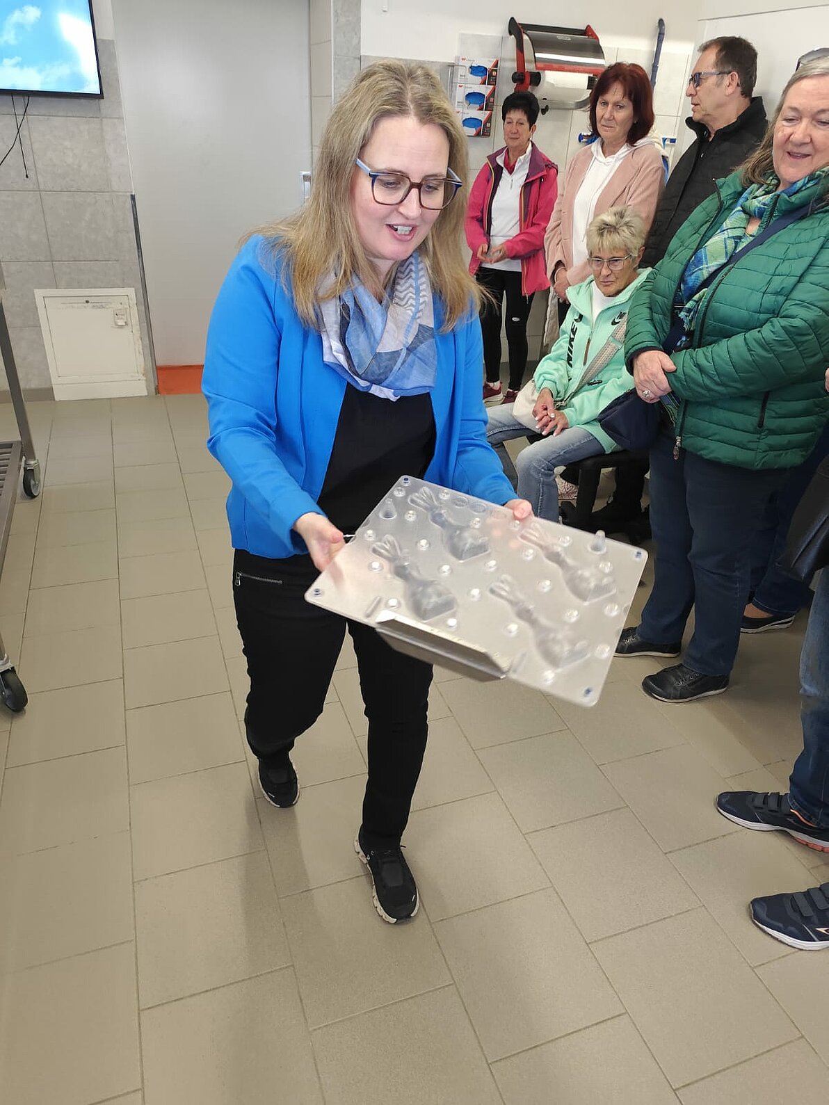 Zum Abschluss kamen wir in den Verkaufsraum, wo jeder seinen Vorlieben entsprechend, sich mit Früchten und Schokolade eindecken konnte. Die neu kreierten Osterhasen Lilo und Fips kamen bei unseren Mitgliedern gut an.