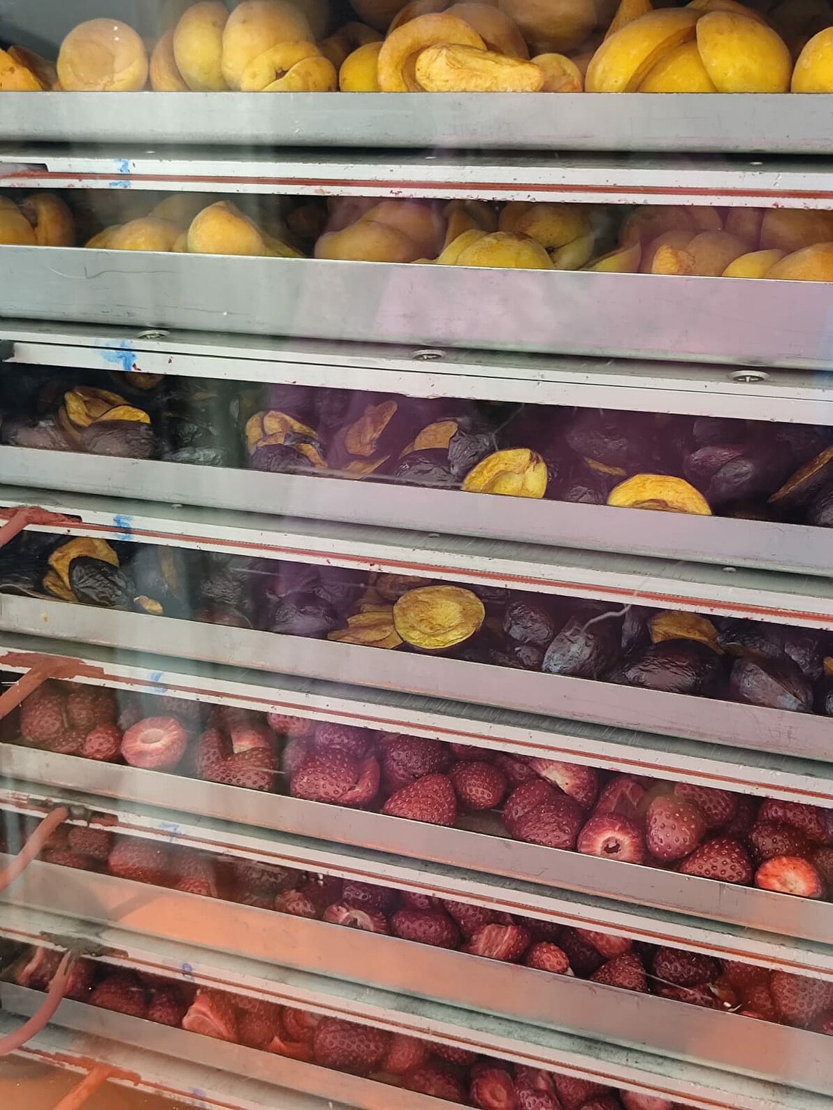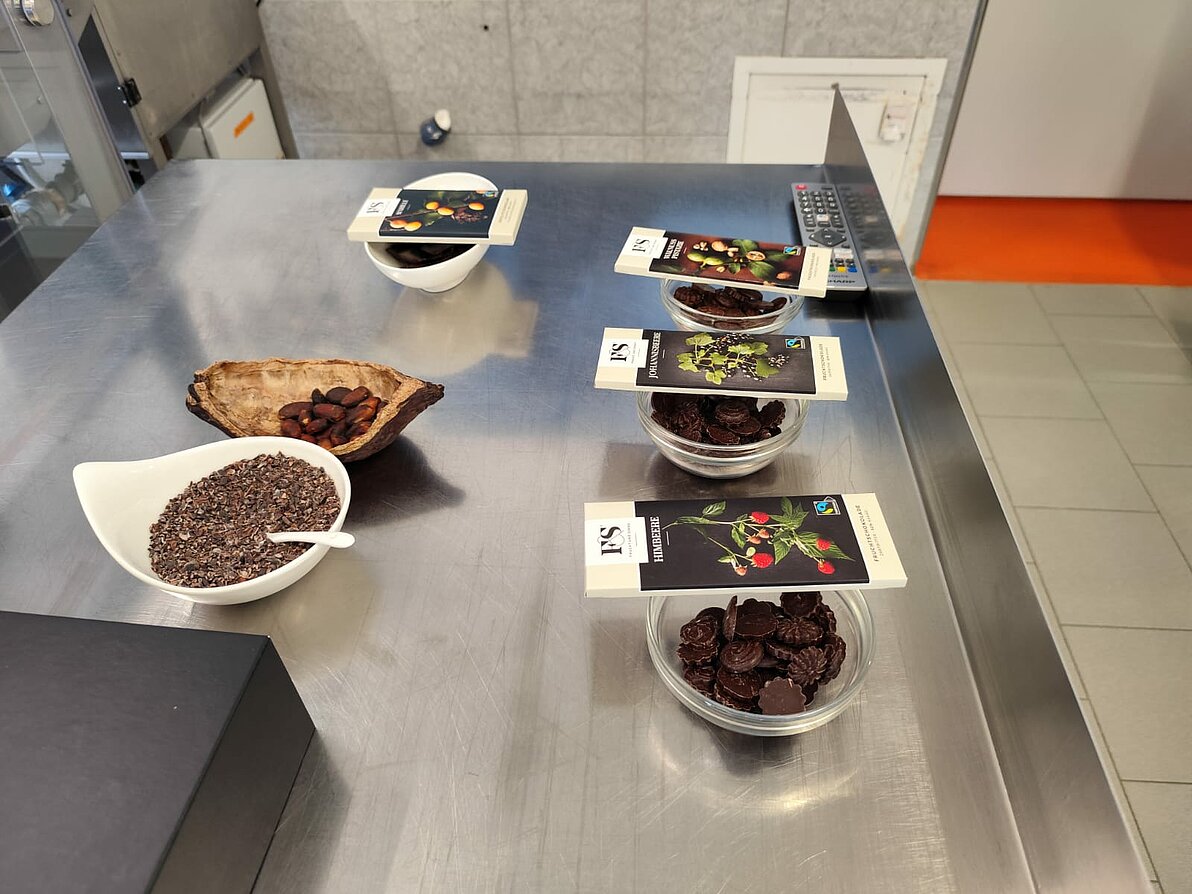 Im zweiten Abschnitt kamen wir in die Produktionsräume, wo wir sahen wie die Früchte getrocknet werden. In einem Film konnten wir den Produktionsablauf gut nachvollziehen. Auch hier gab es wieder Köstlichkeiten zu probieren - Fruchtschokolade, gefüllte Schokolade und Pralinen.