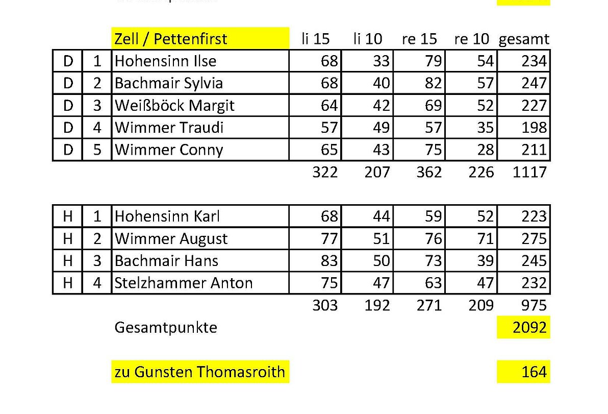 Kegelturnier Thomasroith gegen Zell am Pettenfirst