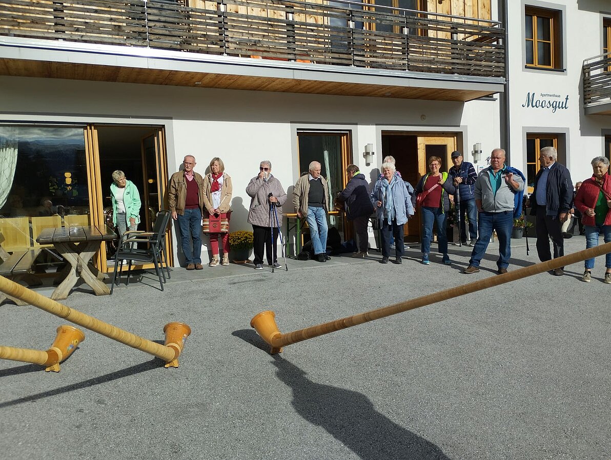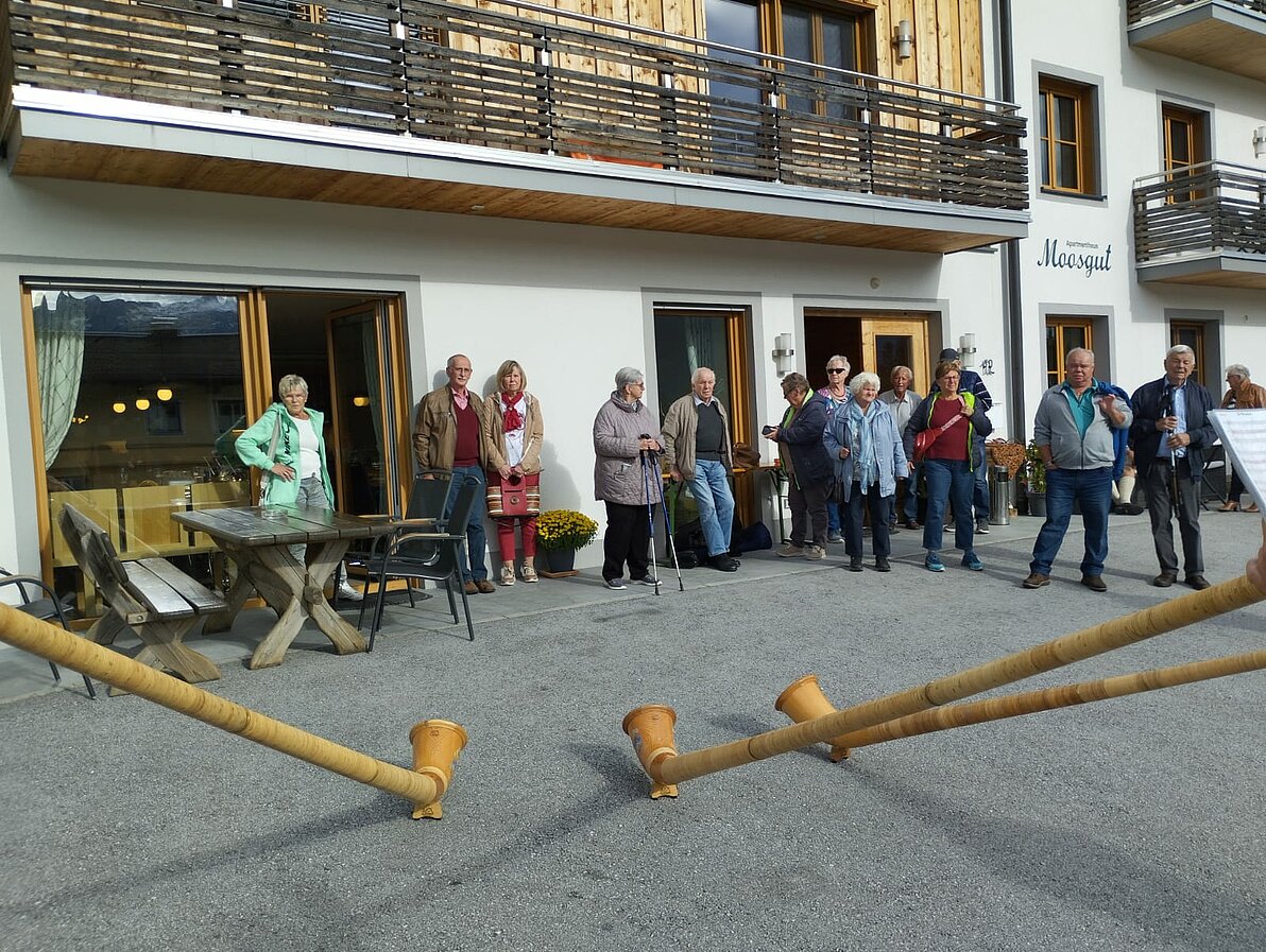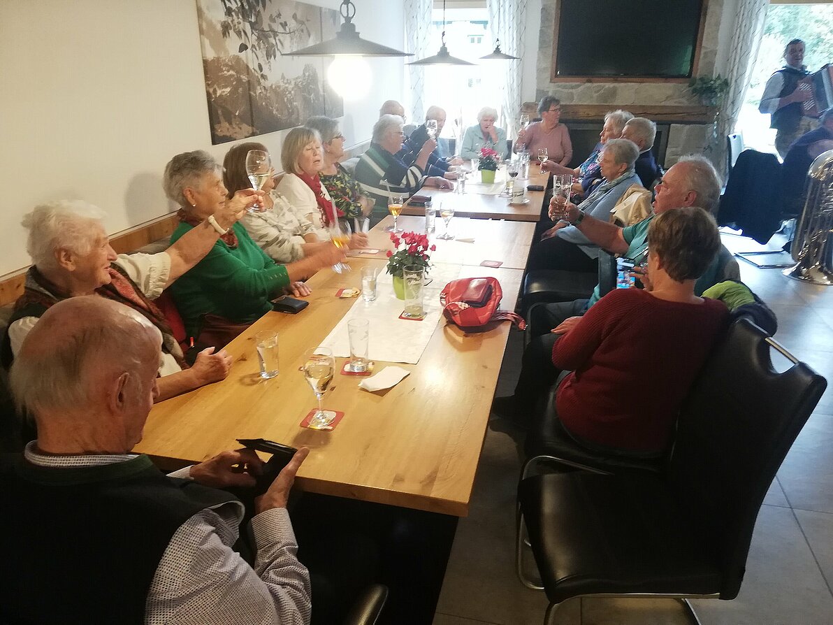 Am 30.09.2024 fuhr unsere Ortsgruppe mit 18 Personen nach Abtenau zum traditionellen "Liachtbratlmontag". Wir kehrten im Moosgut bei Peter Pranieß ein, wo wir ein herrliches Schweinsbratl serviert bekamen. Nach dem Essen unterhielt uns die "Annaberger Tanzlmusi". Als besonderes Gustostückerl gab es auch einige Weisen mit Alphörnern und ein engagierter Einzelmusiker erntete viel Applaus. Es war ein gelungener, lustiger Tag. Auch nächstes Jahr wollen wir diese Tradition fortsetzen, allerdings werden wir wie in vergangenen Jahren auf die Postalm zur neu aufgebauten "Blonden Hütte" fahren.
