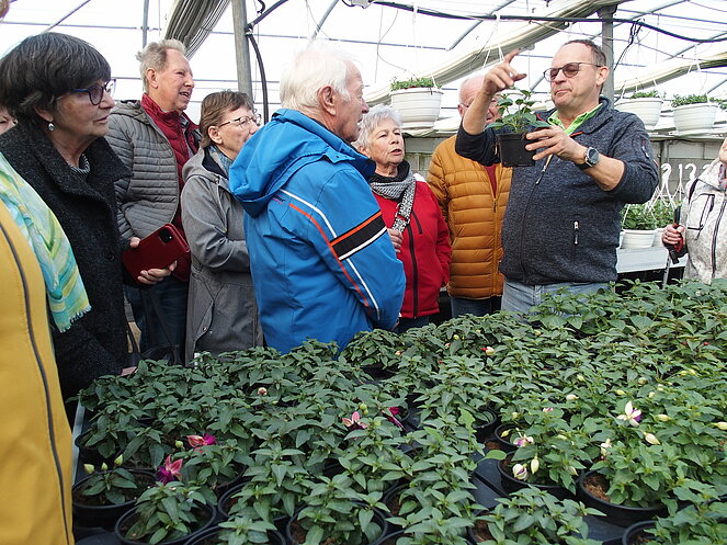 Ein ganz besonderes Erlebnis war die Führung durch die großen Glashäuser, die man sonst nicht zu sehen bekommt. Dort wurde uns eindrucksvoll vor Augen geführt, wie viel Arbeit, Sorgfalt und Fachwissen notwendig sind, damit aus kleinen Pflanzen prächtige Verkaufsstücke werden.