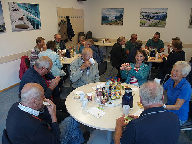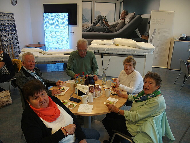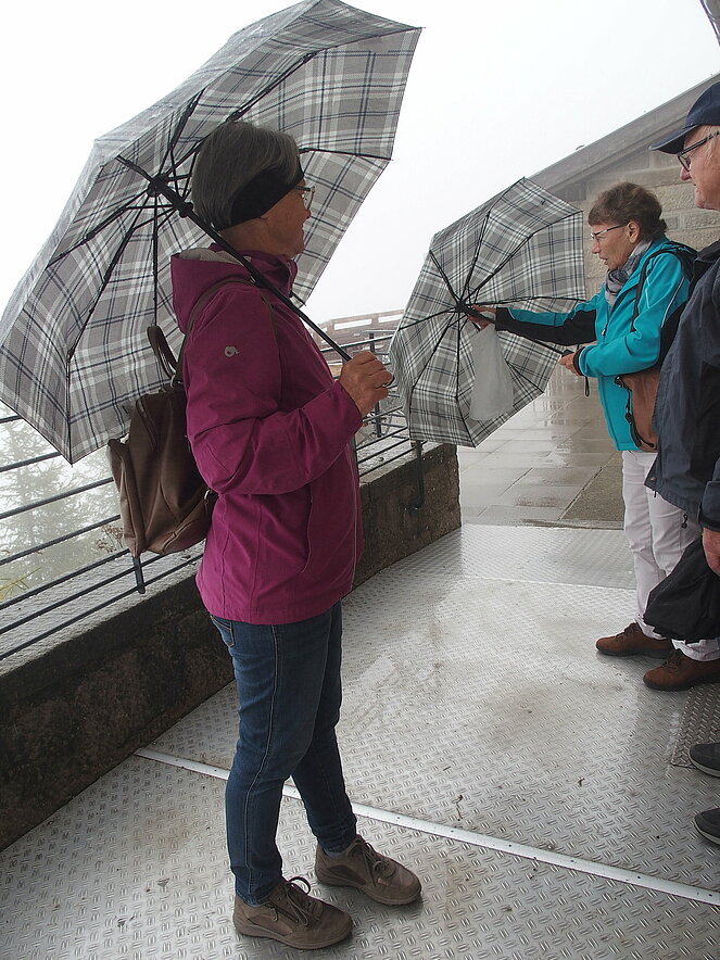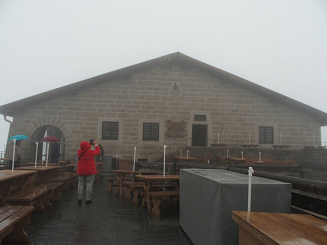 Nach dem Frühstück bei der Fa. Wenatex folgte ein interessanter Vortrag über ein gesundes Bettensystem. Einige genossen das Liegen auf der körpergerechten Matratze. Nach dem Verzehr von „Würsteln“ und beschenkt mit einer Kuscheldecke für jeden Teilnehmer, ging es weiter zum Kehlsteinhaus. Aufgrund des dichten Nebels war die Sicht komplett eingeschränkt, sodass wir den sonst spektakulären Ausblick über die Berchtesgadener Alpen leider nicht genießen konnten. Dennoch bot der Besuch eine besondere Atmosphäre und vermittelte einen Eindruck von der geschichtlichen Bedeutung des Ortes.